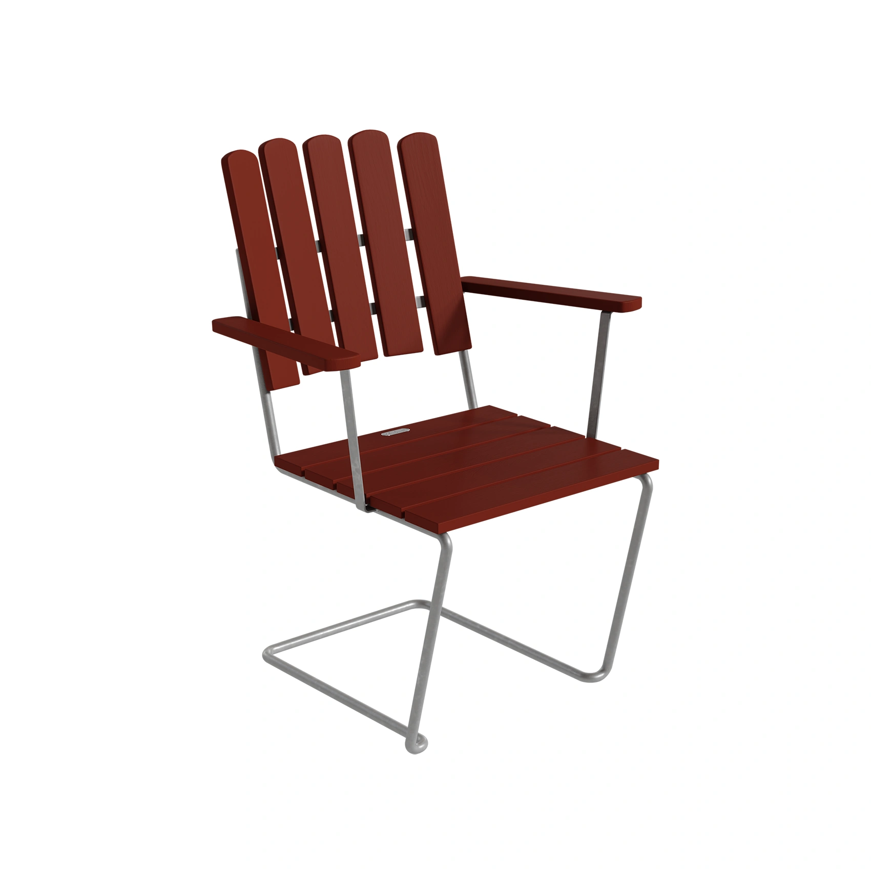 Den klassiska A2 fåtöljen är kanske den möbel som mest förknippas med Grythyttan Stålmöbler. Den designades 1930 av Artur Lindqvist och har sedan dess varit ett kärt inslag i våra bersåer och i trädgårdar runt om i Sverige. Stativet i massivt fjäderstål är hemligheten bakom den rogivande, välkända svikten.