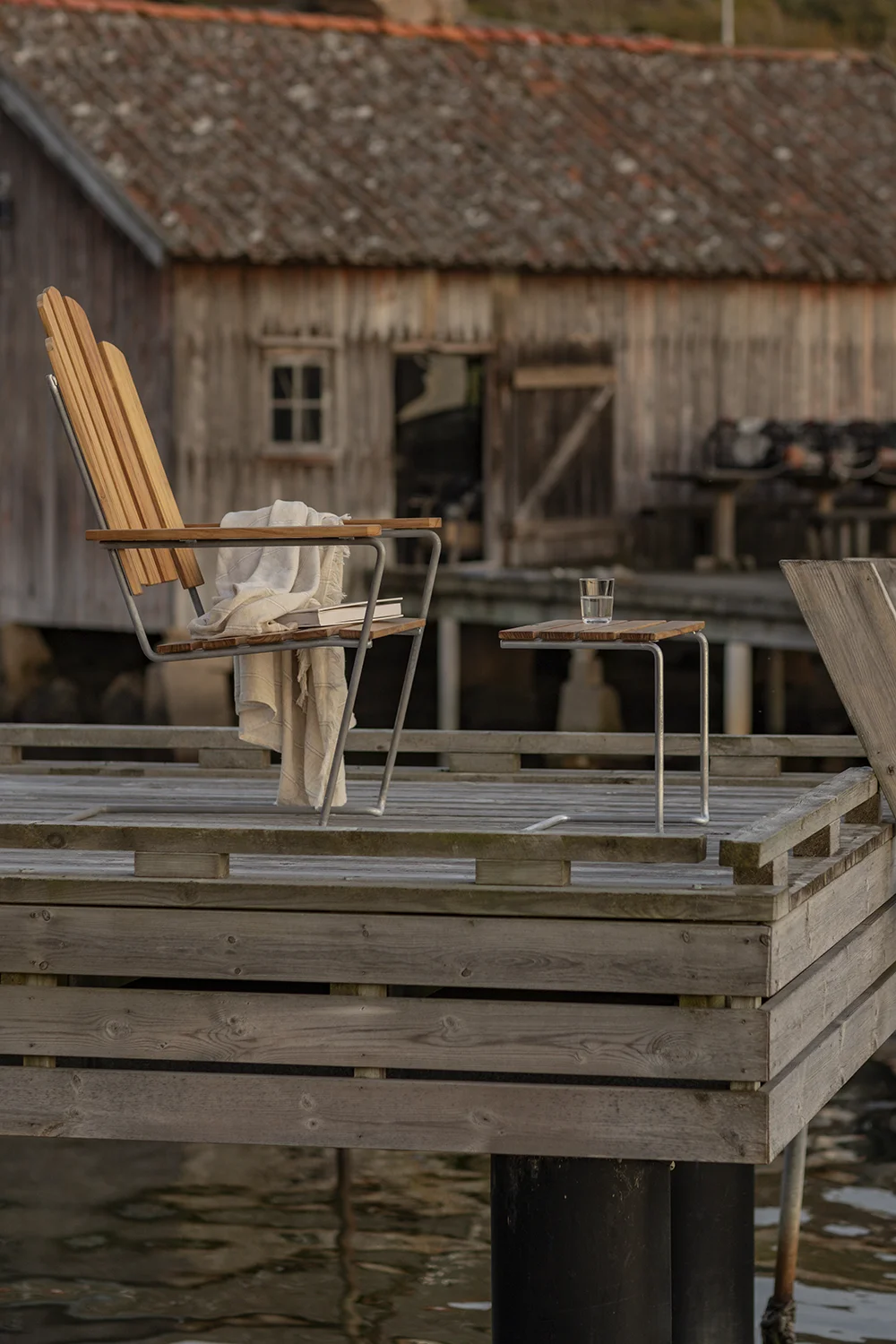 Solstol A3 är en vilstol att avnjuta i det gröna rummet och har tagits fram i samarbete med formgivarna Maria Håård och Jan Olof Ågren. Lägg upp fötterna och luta dig bekvämt bakåt – det karaktäristiska Grythyttegunget har aldrig känts bättre.