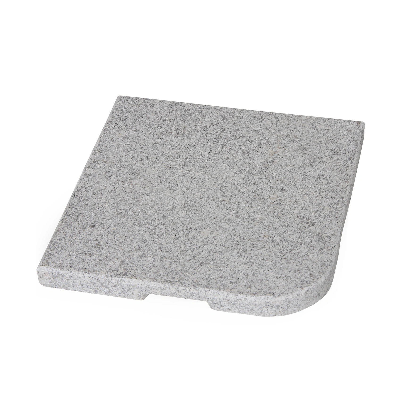 Parasollfotsvikt (1 st) i granit för frihängande parasoll med fotkors. Här i grå granit med grov yta. Till ett parasoll kan man ha upp till 4 st vikter.