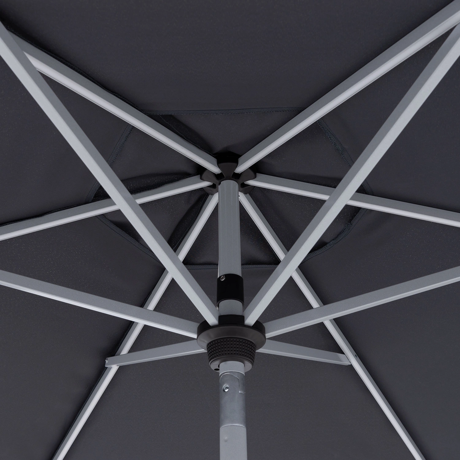 Detta möjliggör enkel, automatisk lutning av paraplyet genom att vrida på vevhandtaget. Detta system gör att det praktiskt taget inte krävs nån kraft för att öppna, fälla och stänga solskyddet, vilket gör det mycket användarvänligt. Duken har en solskyddsfaktor på LSF 50+ och skyddar dig dessutom på ett tillförlitligt sätt från solens strålar. Tack vare den vattentäta beläggningen tål det även en lätt regnskur.