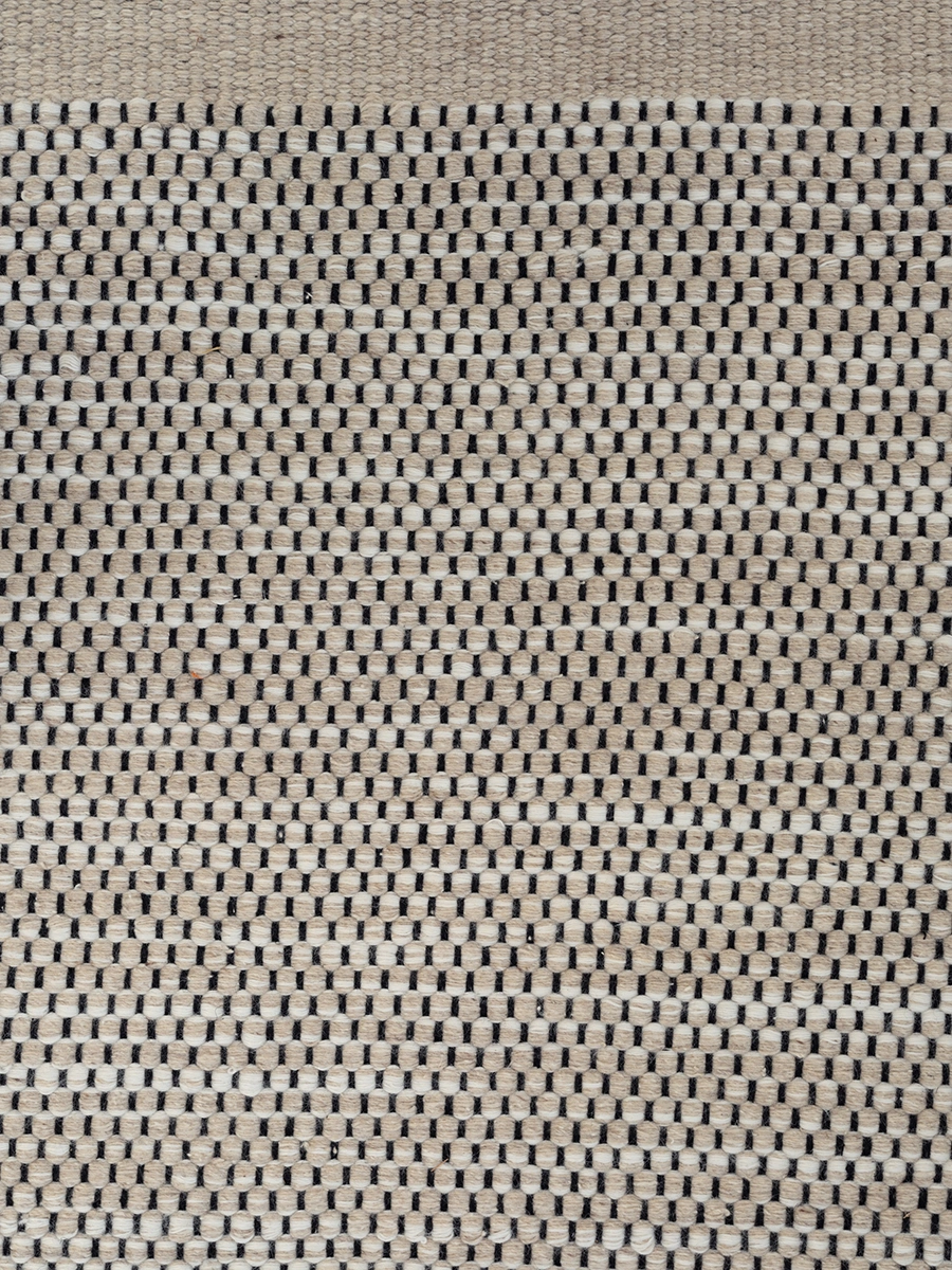 Mattan är tillverkad av 100% återvunnen PET, ett slitstarkt och miljövänligt material som lämpar sig för både inomhus- och utomhusbruk. För inomhusmiljöer rekommenderas regelbunden dammsugning utan roterande borstar. Vid behov kan mattan rengöras med vatten och mild tvållösning – undvik att skrubba hårt för att bevara garnets struktur.