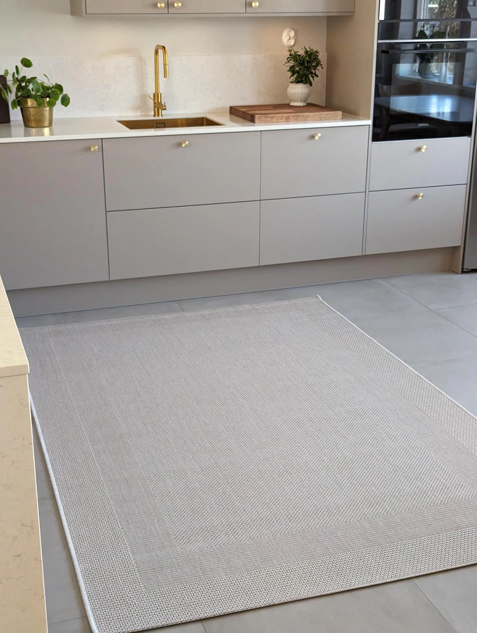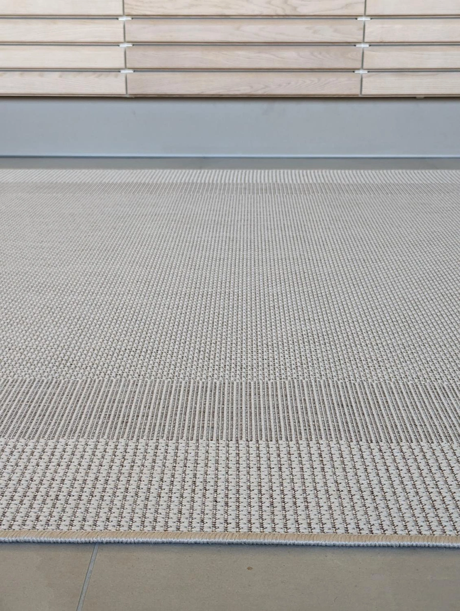 Adria har ett snyggt och stilrent bårdmönster som ramar in hela mattan, vilket tillsammans med de olika strukturerna i vävtekniken gör den mycket lättplacerad i alla rum. Denna design kombinerar estetik med funktionalitet på ett överlägset sätt, vilket gör mattan till en perfekt detalj för varje utrymme.