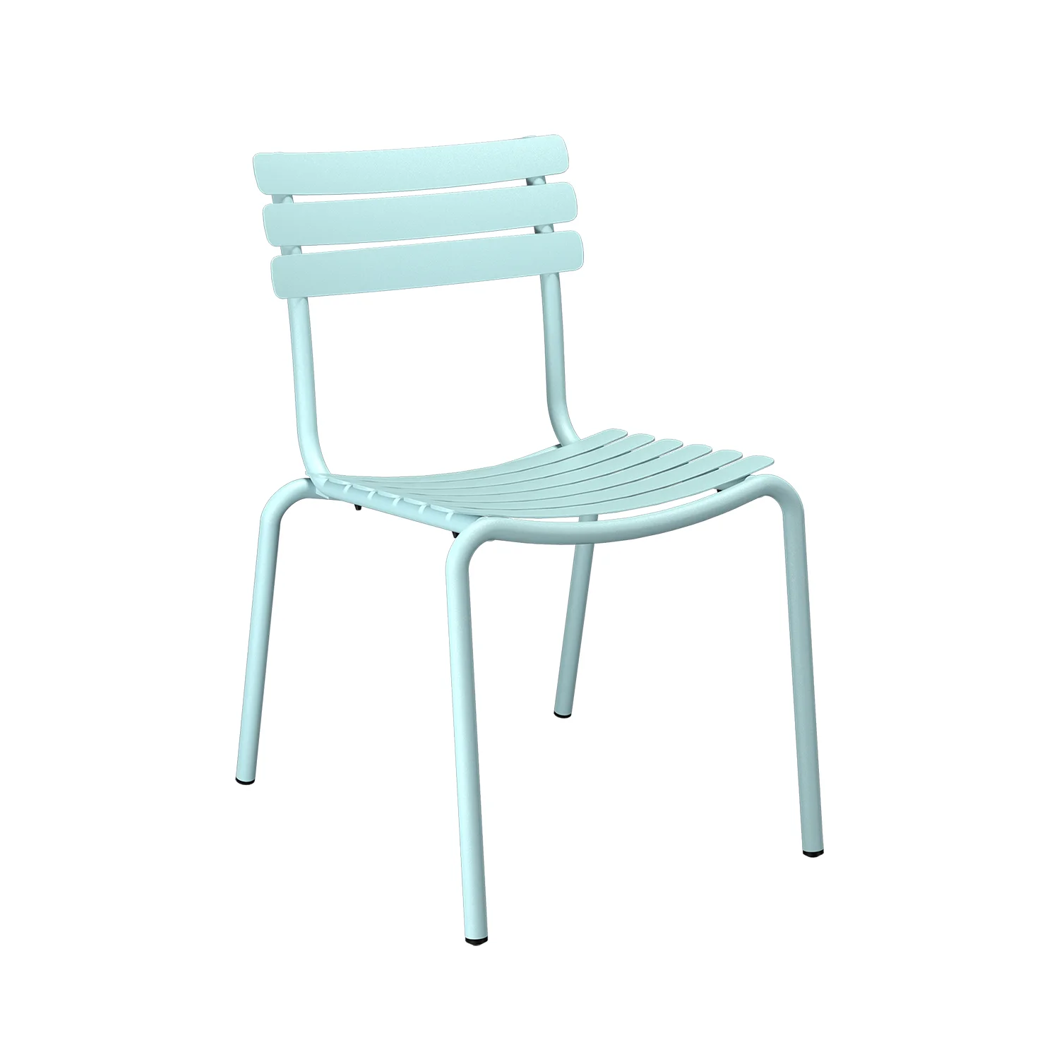 ALUA är en mångsidig matstol helt i aluminium, designad för många olika miljöer, oavsett om det är en privat balkong, en offentlig park eller en restaurang.