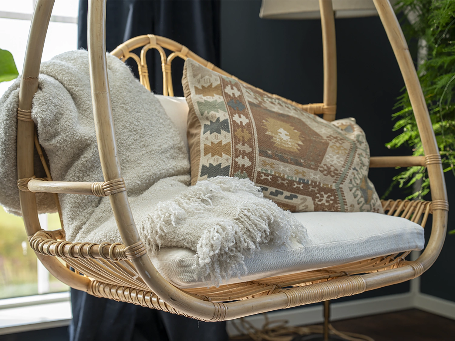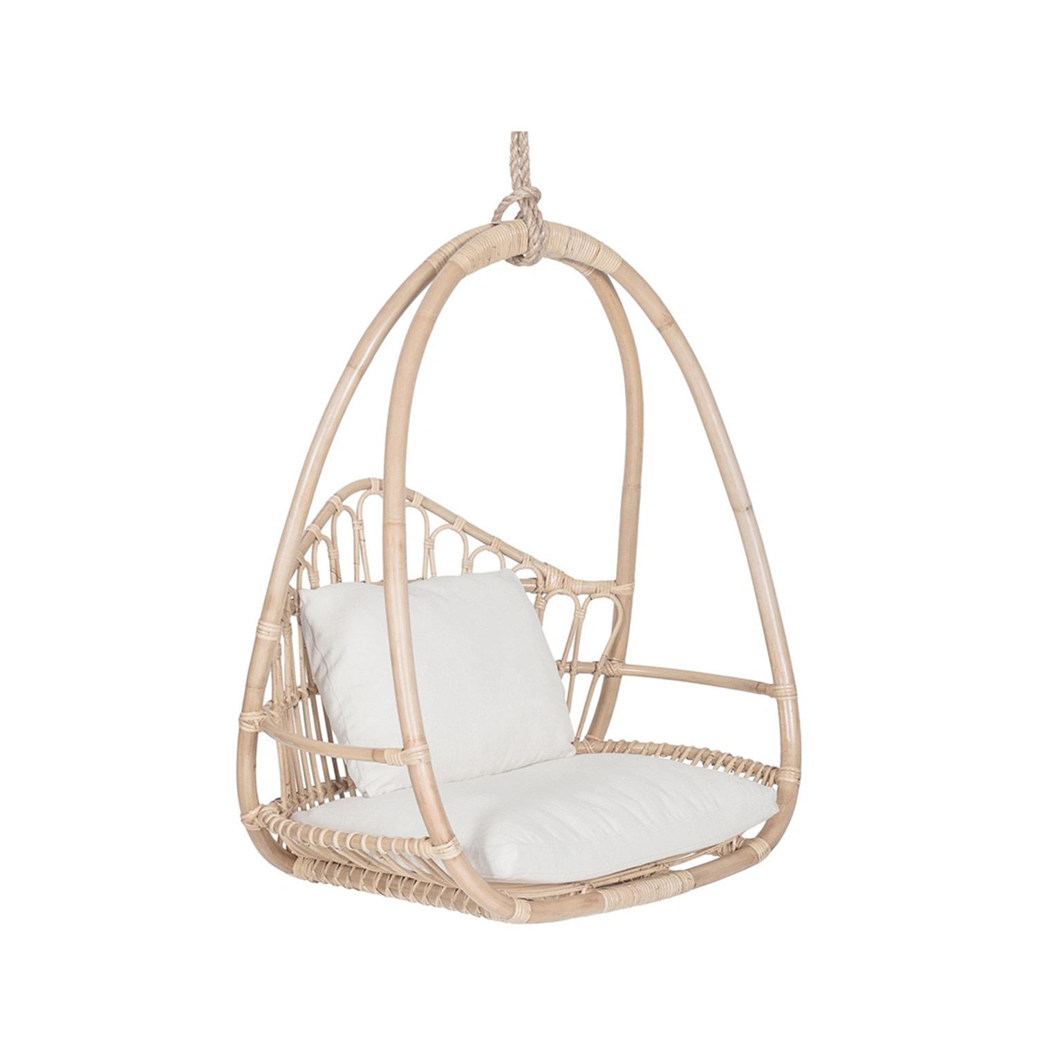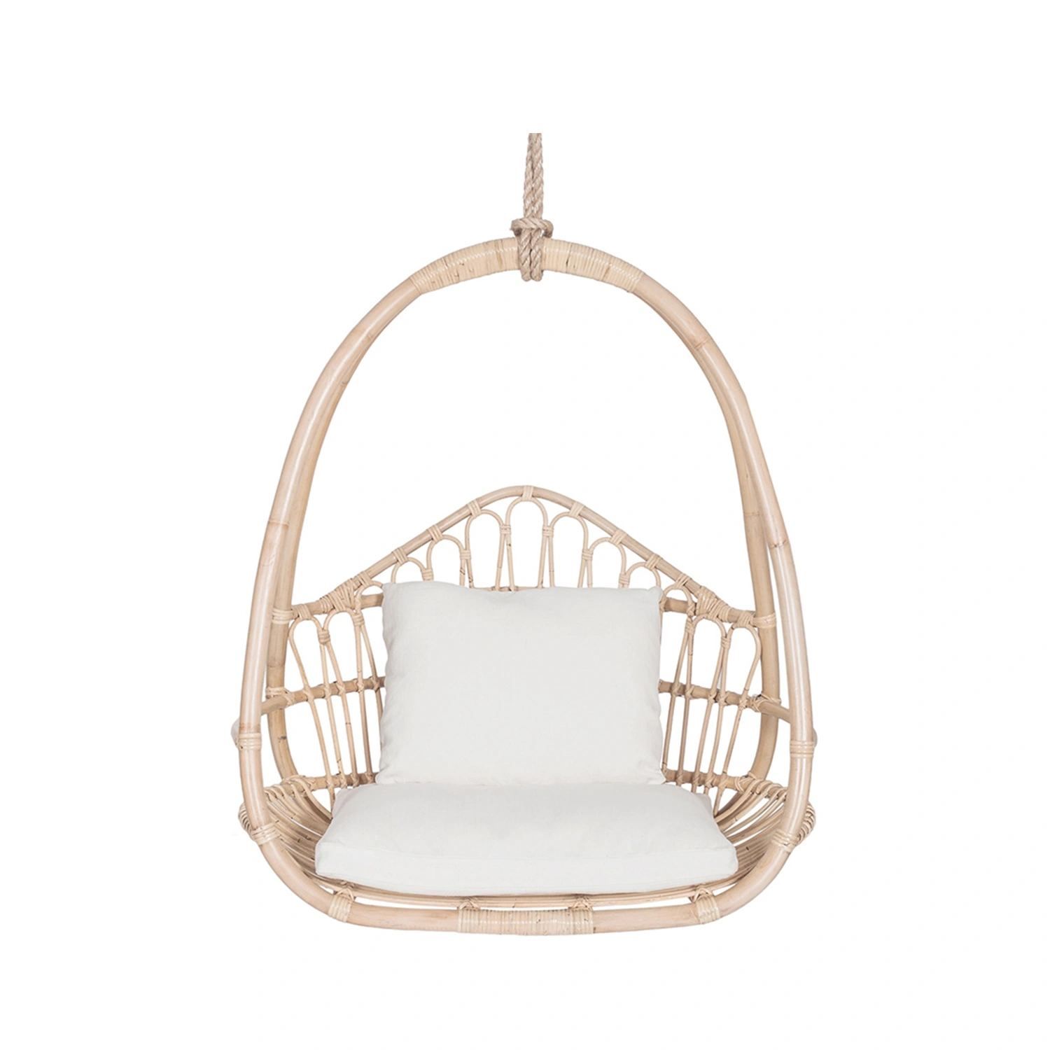 Alva är en smakfull hängkorg i ljus naturrotting som kombinerar trend och charm i en inbjudande helhet. Den mjuka dynan i creméfärgad polyester/bomull ger hög komfort och gör stolen till en favoritplats för vila och njutning. Med medföljande rep är det enkelt att hänga upp Alva på veranda, i orangeri eller växthus. Den fungerar både som en karismatisk inredningsdetalj och som en bekväm plats att koppla av på. Alva lämpar sig bäst för inomhusbruk, där dess naturliga charm får komma till sin fulla rätt.