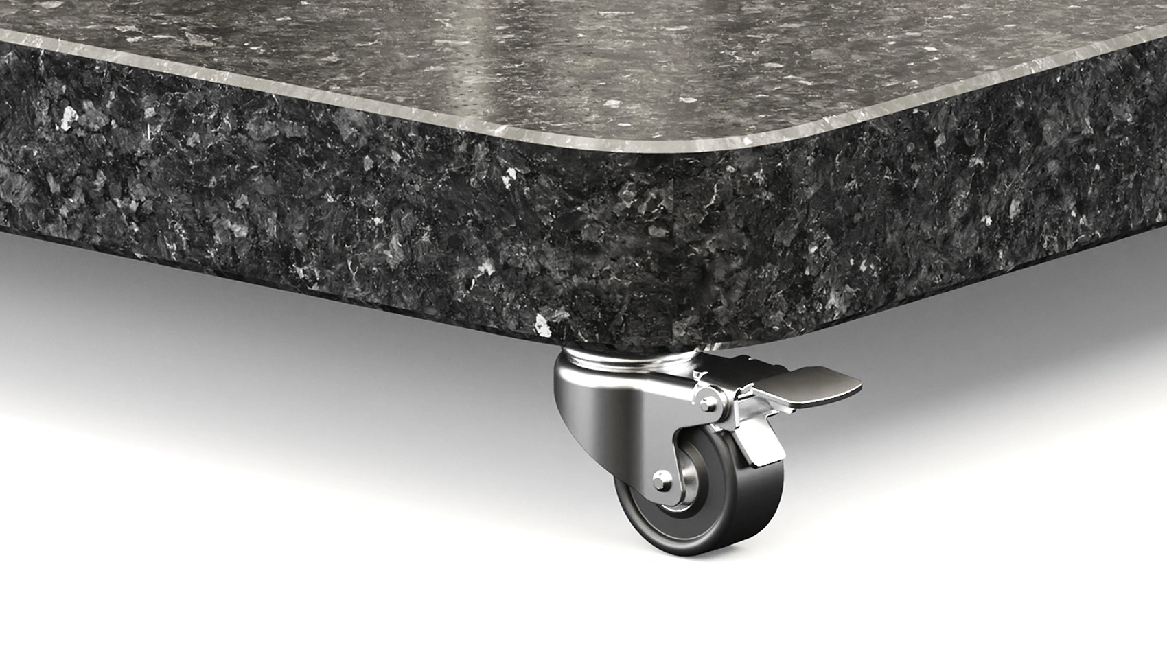 Denna flyttbara parasollfot i natursten för friarmsparasoll är tillverkad av specialutvald, mörk granit och är polerad. Granitens höga kvalitet och vår efterbehandling säkerställer långvarig färgbeständighet. Hörnen är rundade för att ge ett modernt och mjukt intryck.