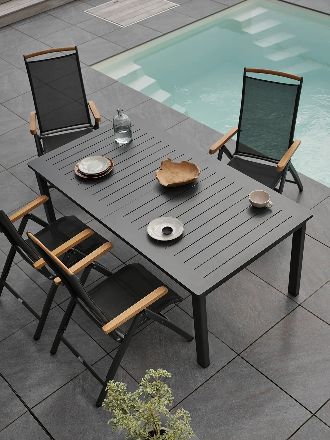 Andy – en av Brafabs absolut mest populära serier. Stomme av aluminium samt sits och rygg i textilene, med detaljer i teak eller nonwood. Finns som positionsstol, fotpall och solsäng.