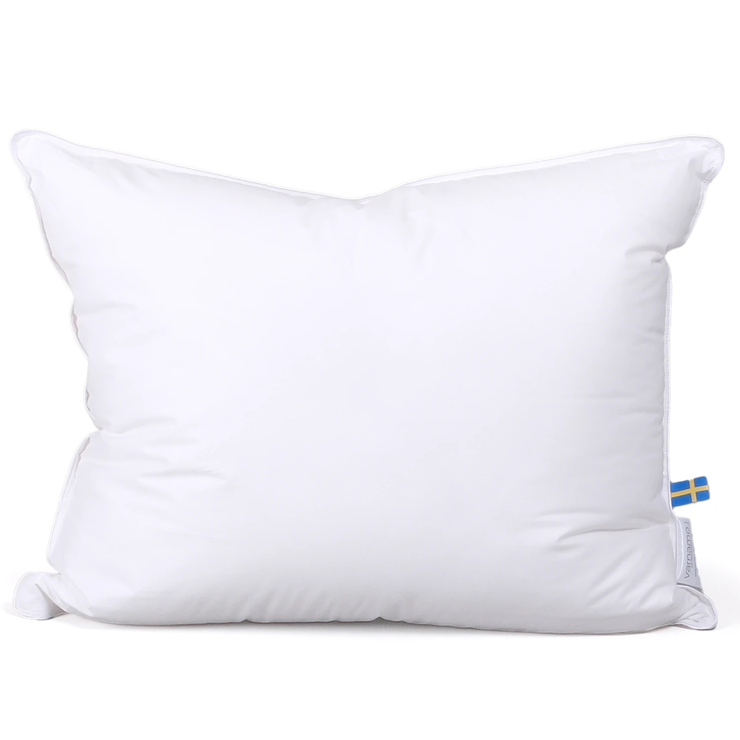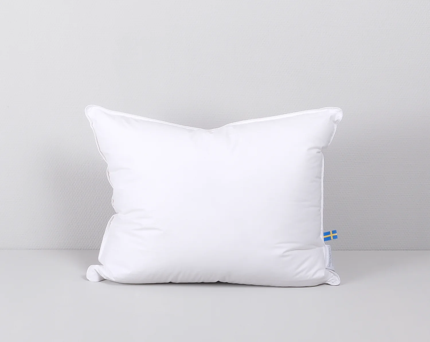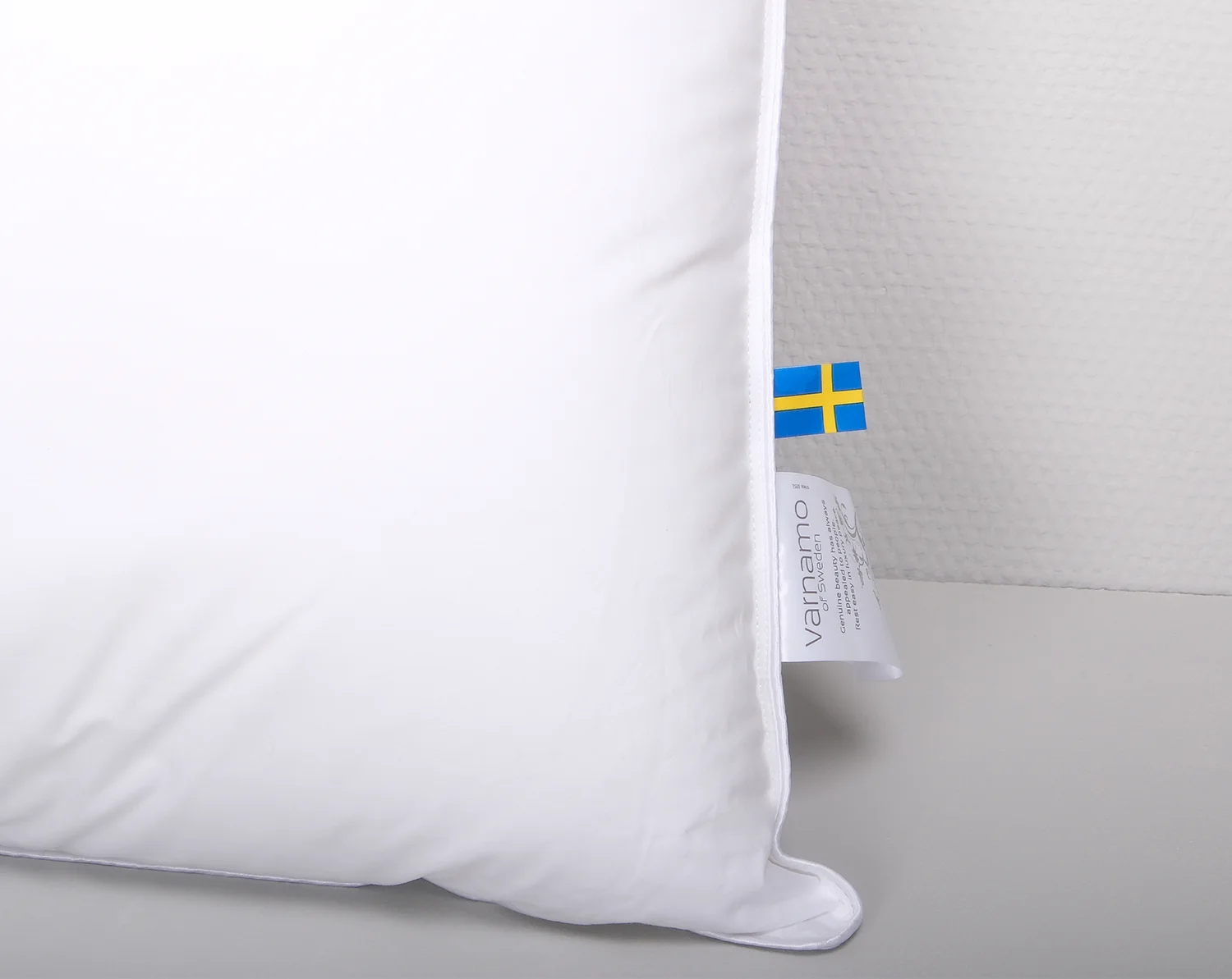 Stoppad med 100% silikoniserad microfiber – certifierad återvunnen polyesterfiber. Detta gör att kudden får en perfekt mjukhet för nacke och huvud. Tack vare fiberns tvätt- och torkegenskaper är kudden allergisäker. Kudden innehåller heller inga kemikalier. Sydd med dubbla kantsömmar med en vit satin piping.