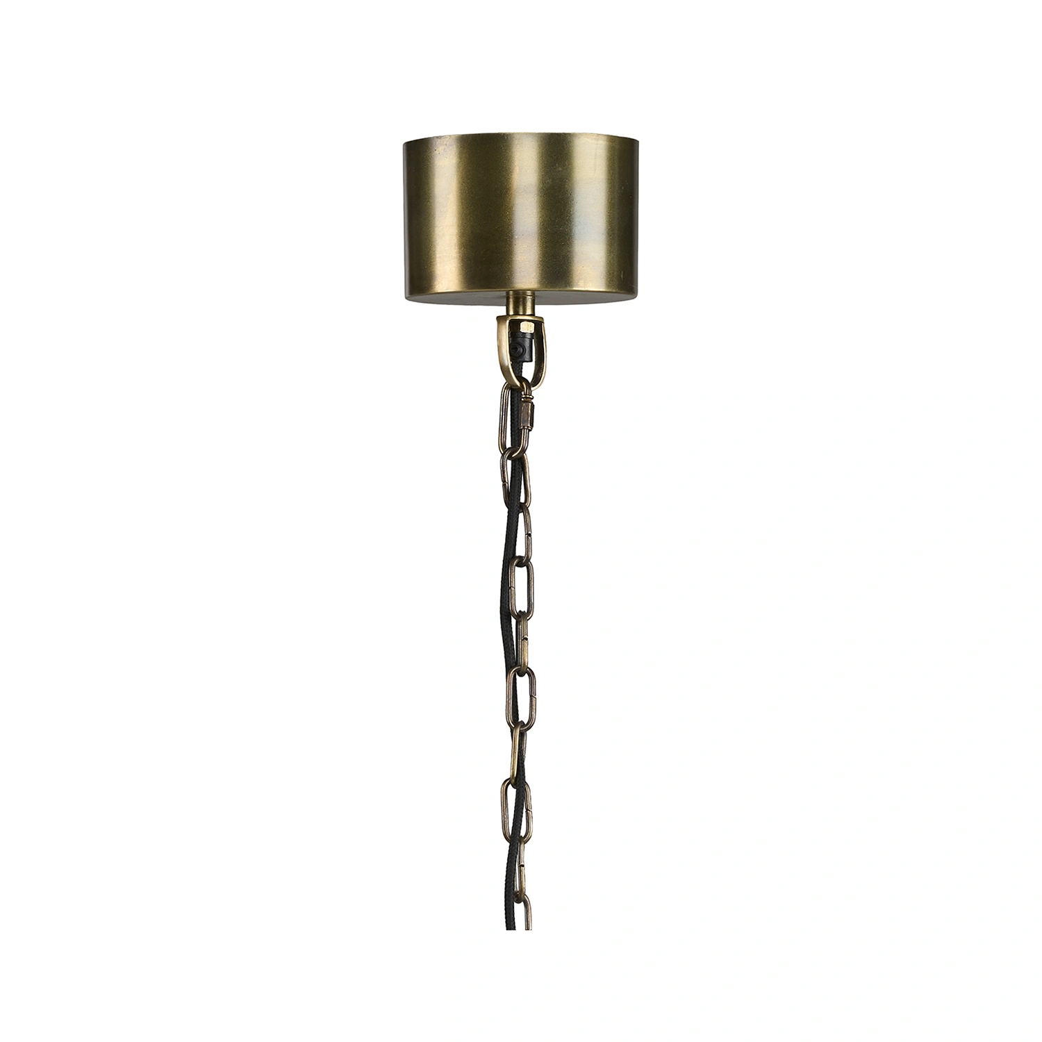 Skapa en varm och stämningsfull atmosfär med denna eleganta taklampa i metall med antik mässingsfinish. Den stilrena designen passar lika bra över matbordet som i vardagsrummet eller hallen, där den tillför både funktion och karaktär.