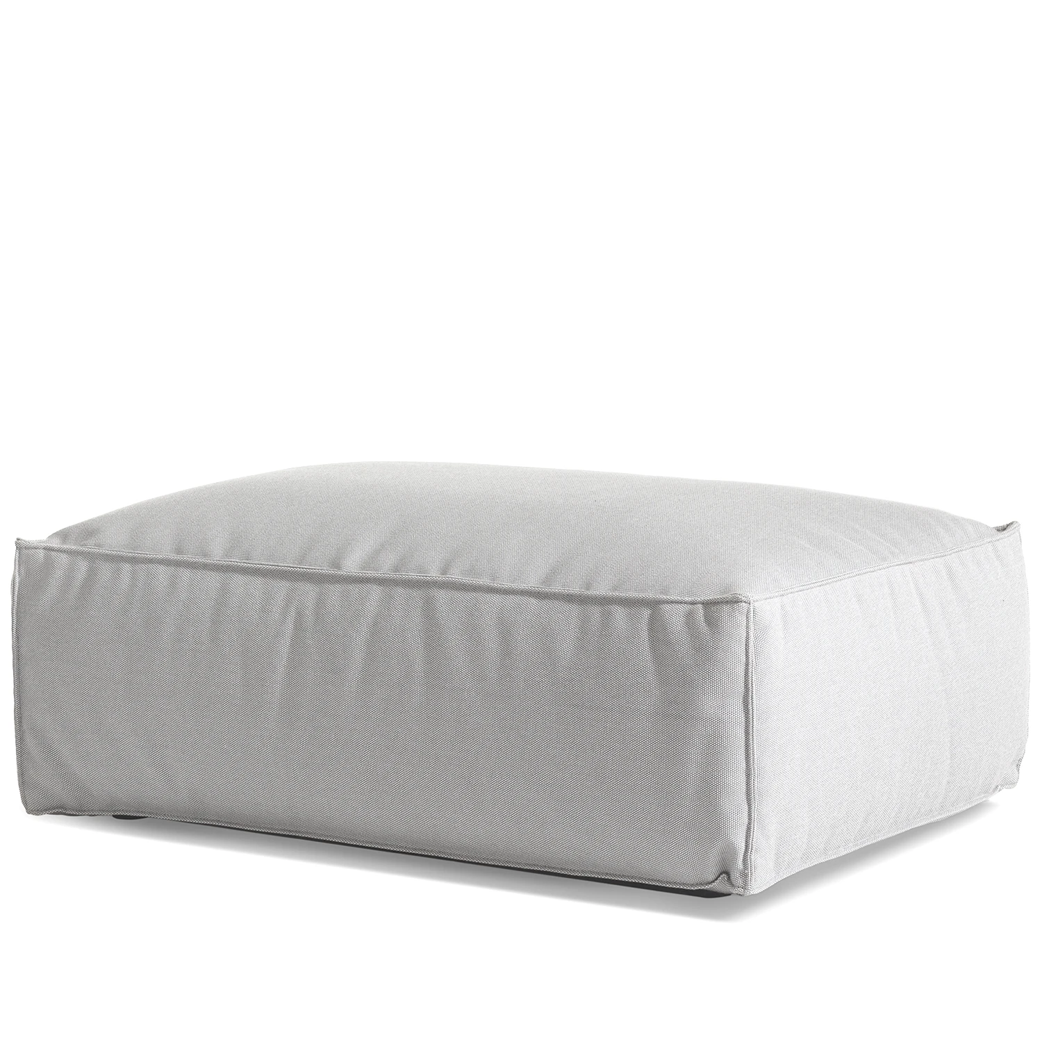 Asker Ottoman i ljusgrått är en låg, generöst tilltagen fotpall med ett avskalat formspråk och mjuka linjer. Den är klädd i ett slitstarkt tyg som är särskilt framtaget för att tåla utomhusbruk, samtidigt som det behåller en textil känsla som passar lika bra i uterummet som på terrassen. Den ljusgrå färgen ger ett sobert intryck och fungerar som en neutral bas i både ljusa och mörka miljöer.