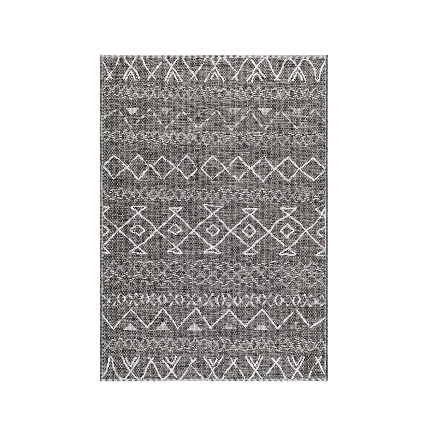 Athena Aztek är en trendig indoor/outdoormatta med ett aztekinspirerat mönster i vitt på en grå bakgrund. Den stilrena designen gör att mattan passar lika bra under matbordet inomhus som under soffgruppen på terrassen. Mattan finns i två storlekar.