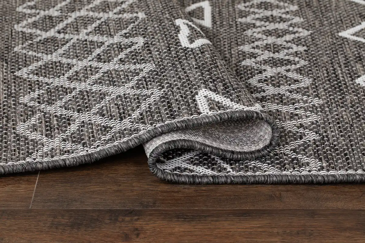 Ge din altan, balkong eller veranda ett lyft med denna slitstarka och bekväma matta. Den är flatvävd och tillverkad av 100% polypropylen, vilket gör den motståndskraftig mot fukt och lämplig för både inomhus- och utomhusbruk. Utan tät lugg där smuts kan fastna, är den enkel att rengöra och dammsuga.