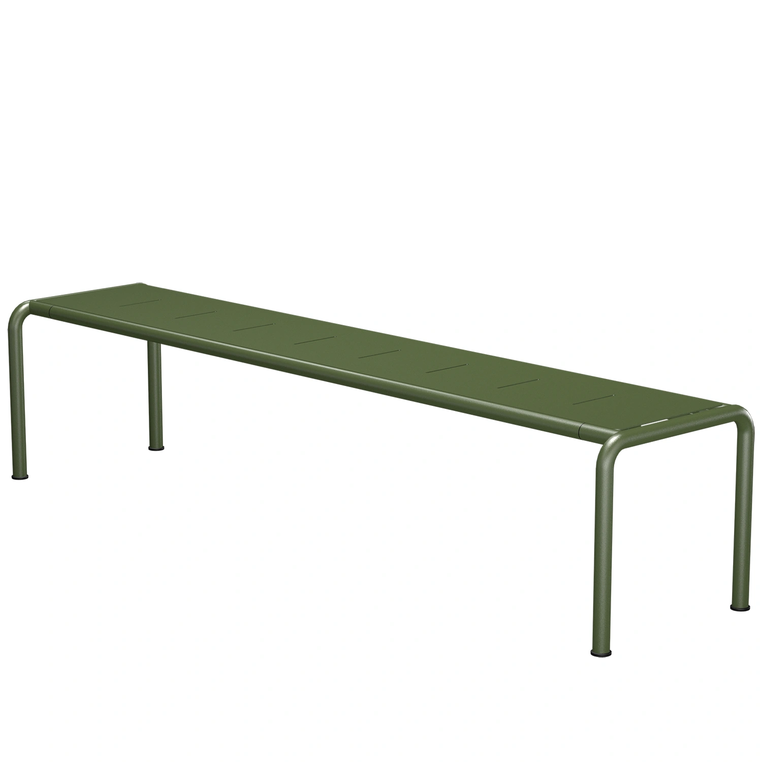 Avanti sittbänk lång med olivgrön pulverlackerad stålstomme och sits i pulverlackerad aluminium.