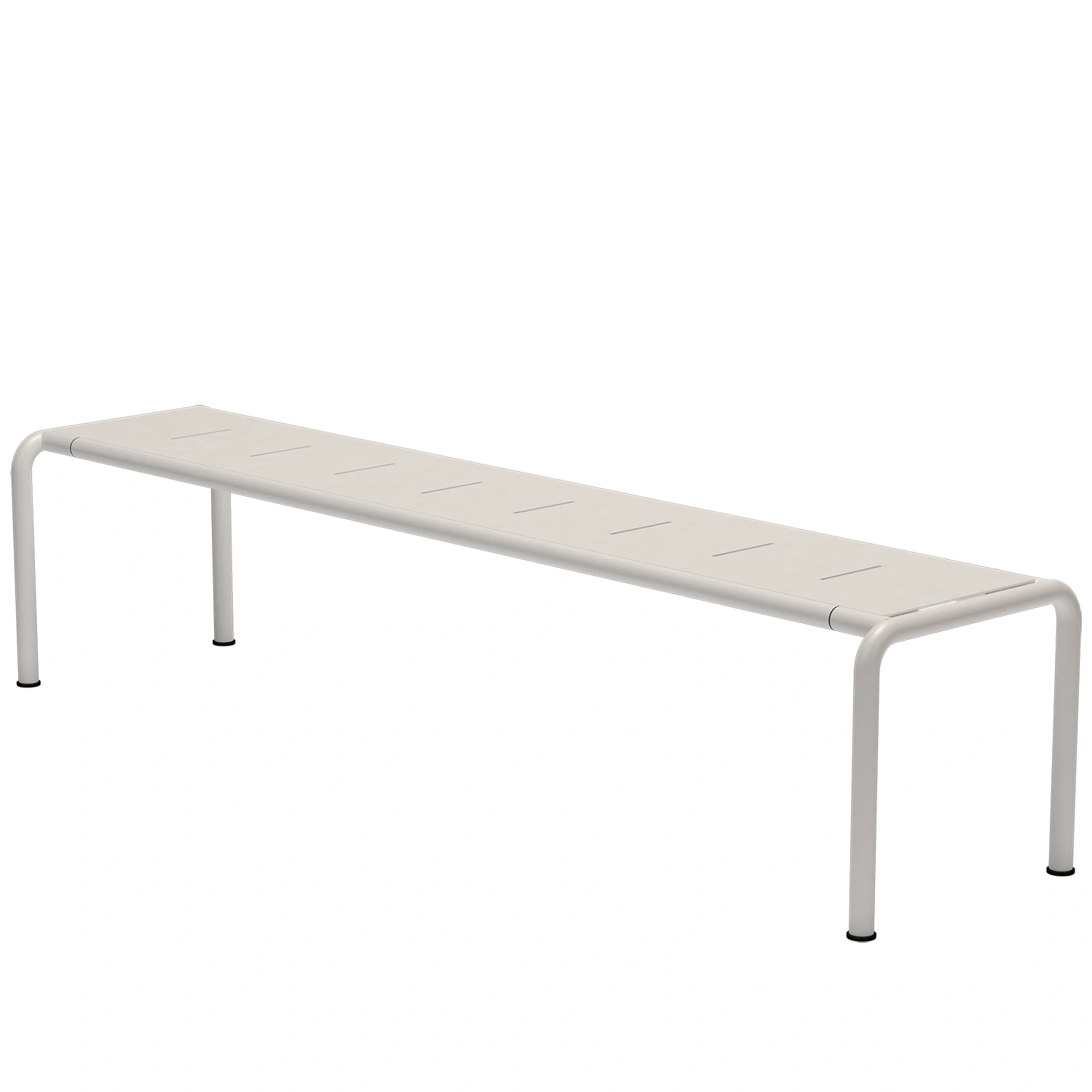 Avanti sittbänk lång med stålstomme pulverlackerad i färgen muted white och sits i pulverlackerad aluminium.