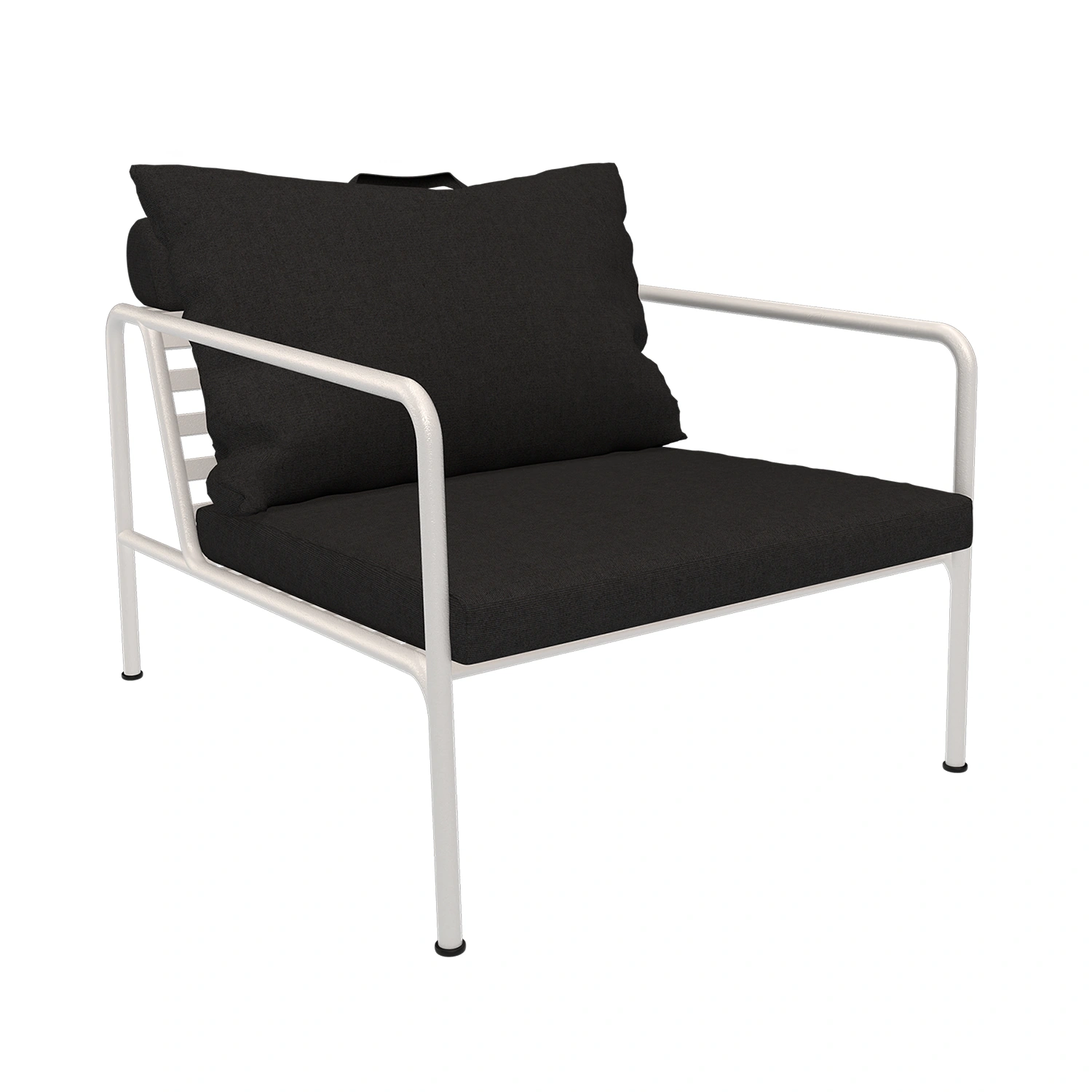 Avon fåtölj med Vattenavvisande dynor i tyget Sunbrella-Heritage. Stomme tillverkad i stål.