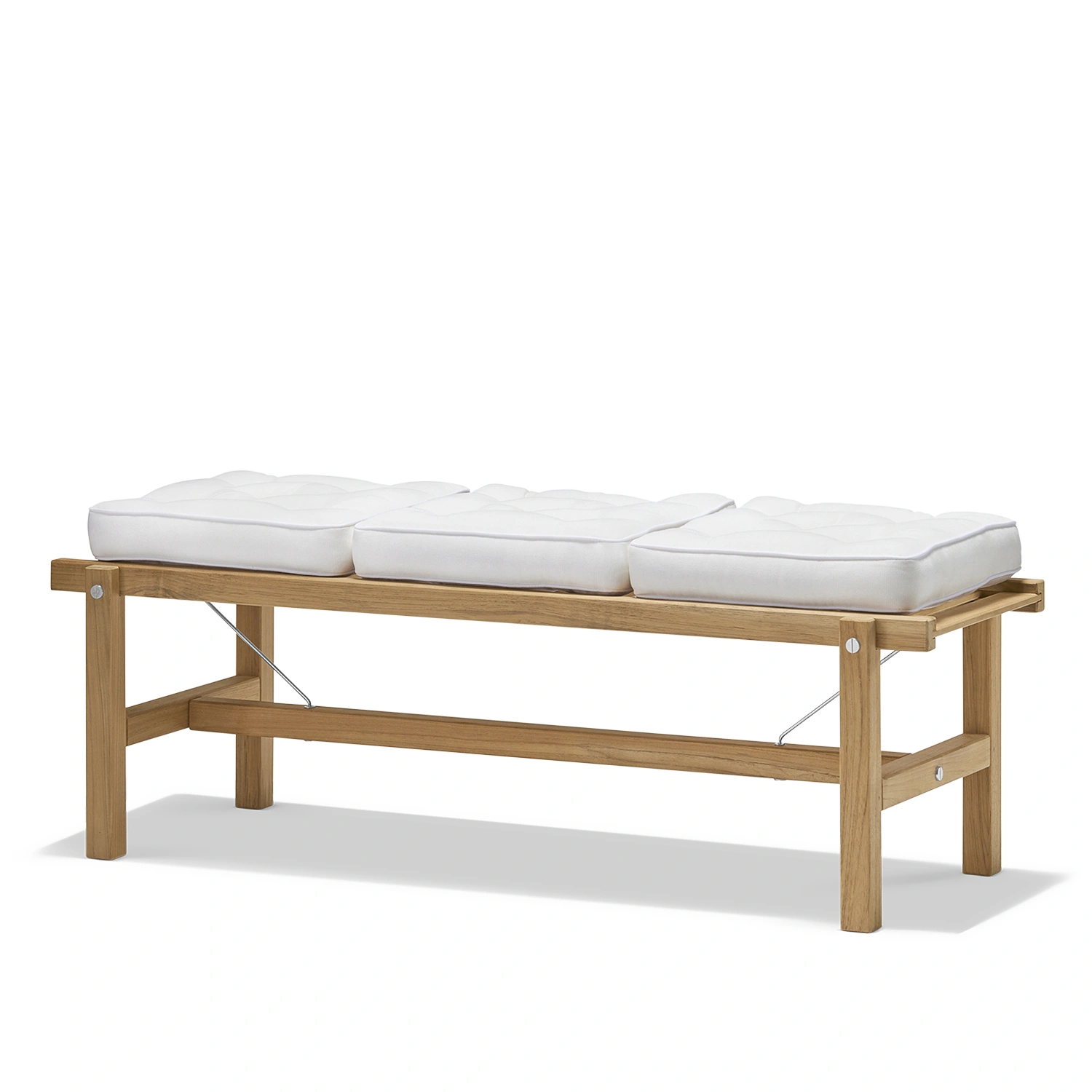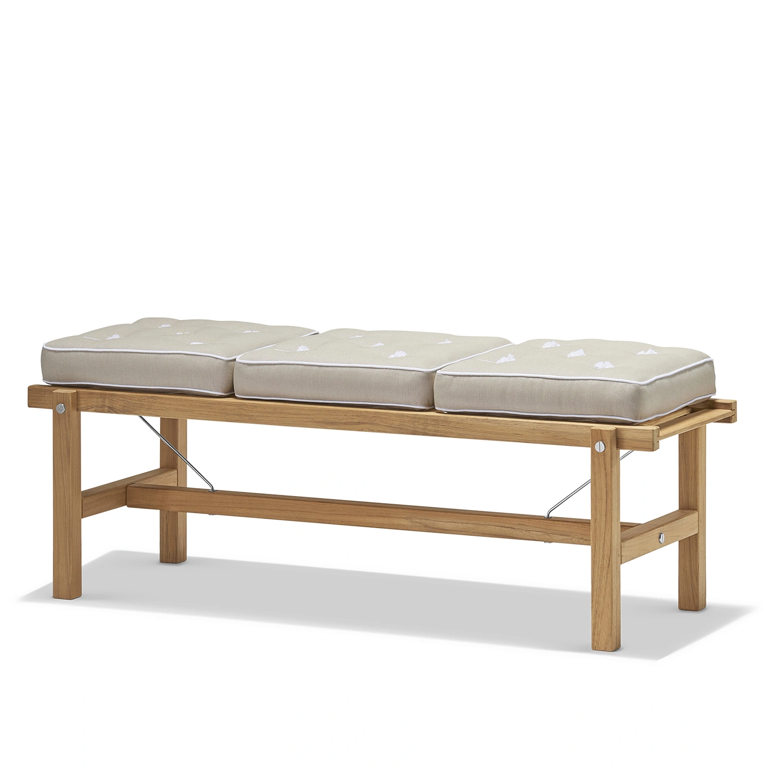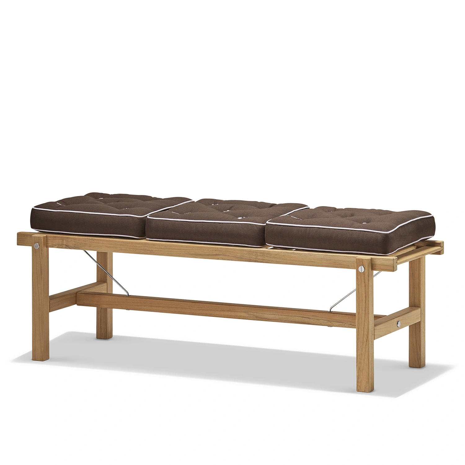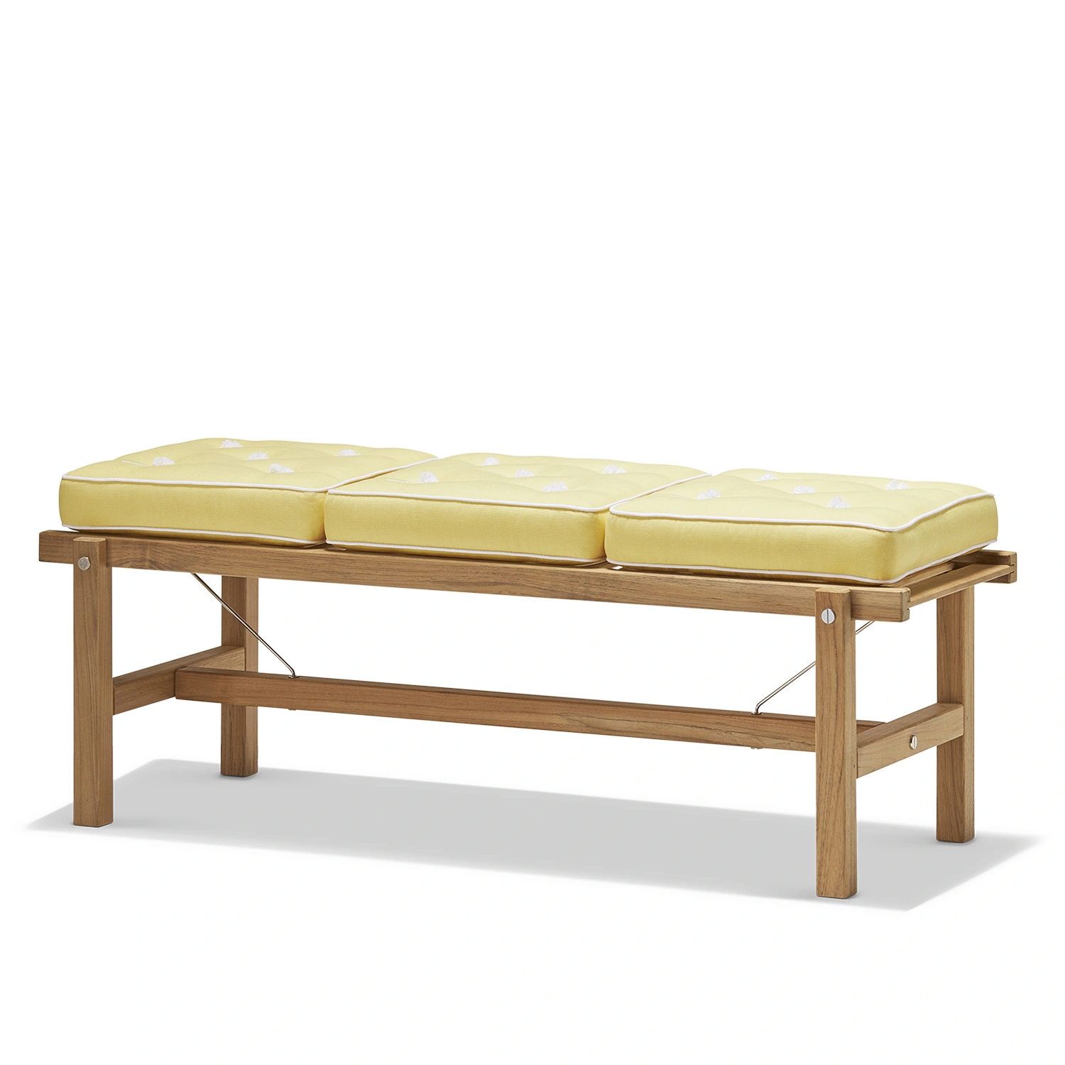 Bänk 45 är en klassisk sittmöbel med rak och enkel form. Den passar lika bra längs husväggen som vid matbordet, och teakens levande yta ger en varm och inbjudande känsla. En möbel som står stadigt i både stil och funktion.