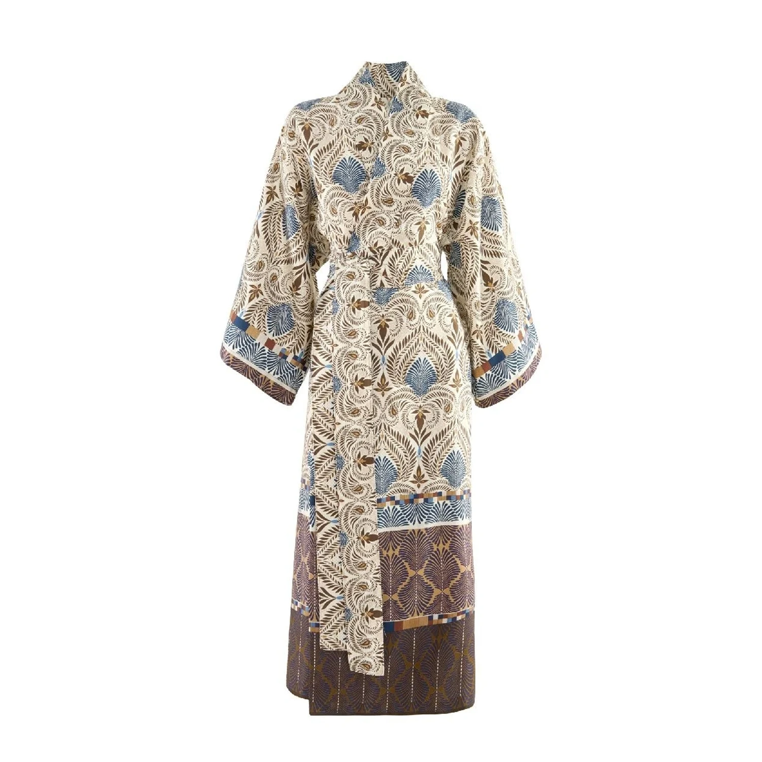 Bassetti Nairobi kaffe kimono från italienska Bassetti Granfoulard, ett varumärke med textilier i exklusiva tyger i vackra mönster. Denna morgonrock är i extra fin bomullssatin med 110 trådar per cm², vilket ger en silkesmjuk känsla.