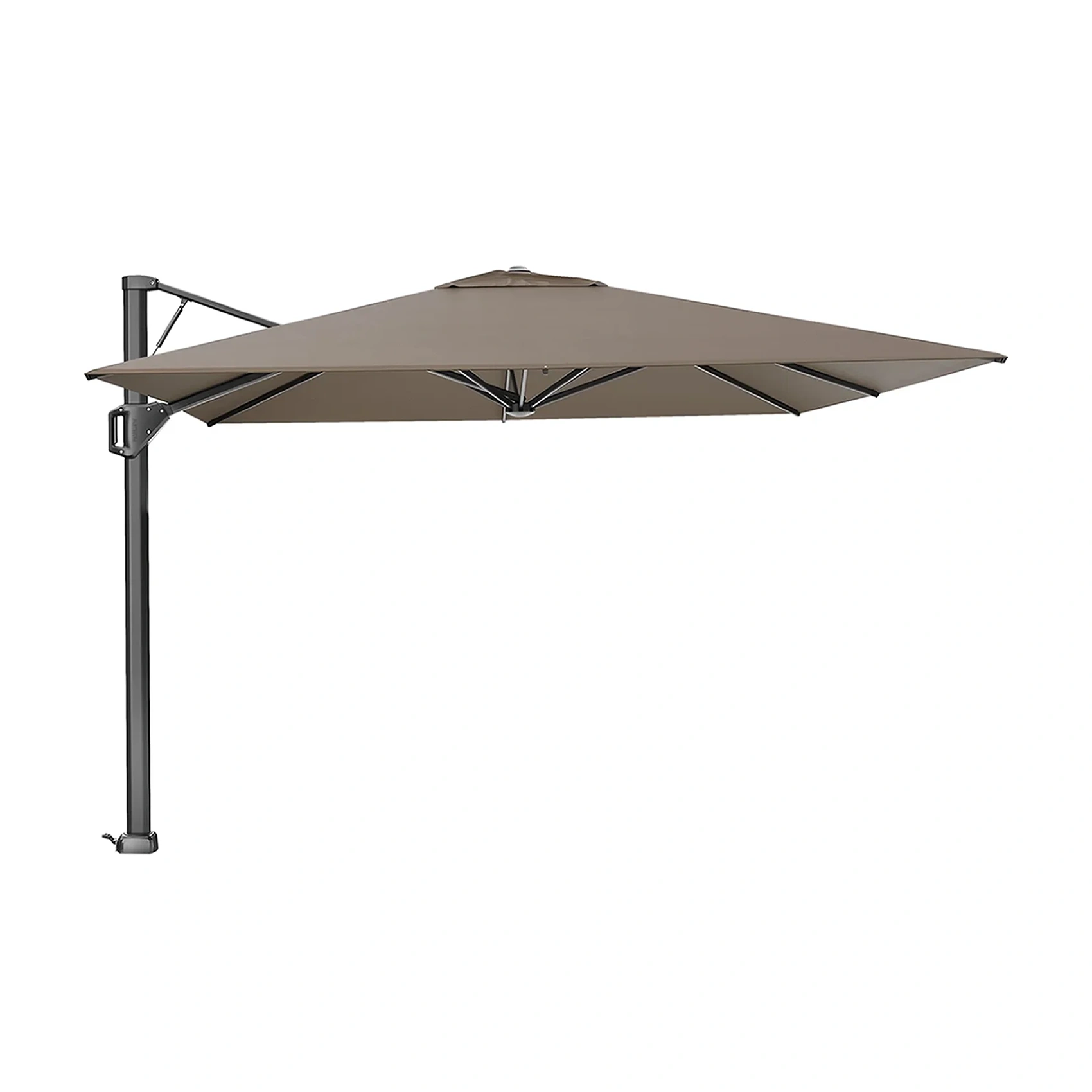 Platinum Sun & Shade frihängande parasoll Beaufort med stativ i färgen antracit och tyg i färgen Havana. Beaufort är ett vindstabilt hängarmsparasoll. Designad för situationer och platser med mer vind, såsom stora trädgårdar och sjöstränder. Med stort fokus på design och användarvänlighet ger Beaufort säkerhet på blåsiga dagar. Beaufort ska självklart fällas ihop när parasollet inte används för att skydda det från vind.