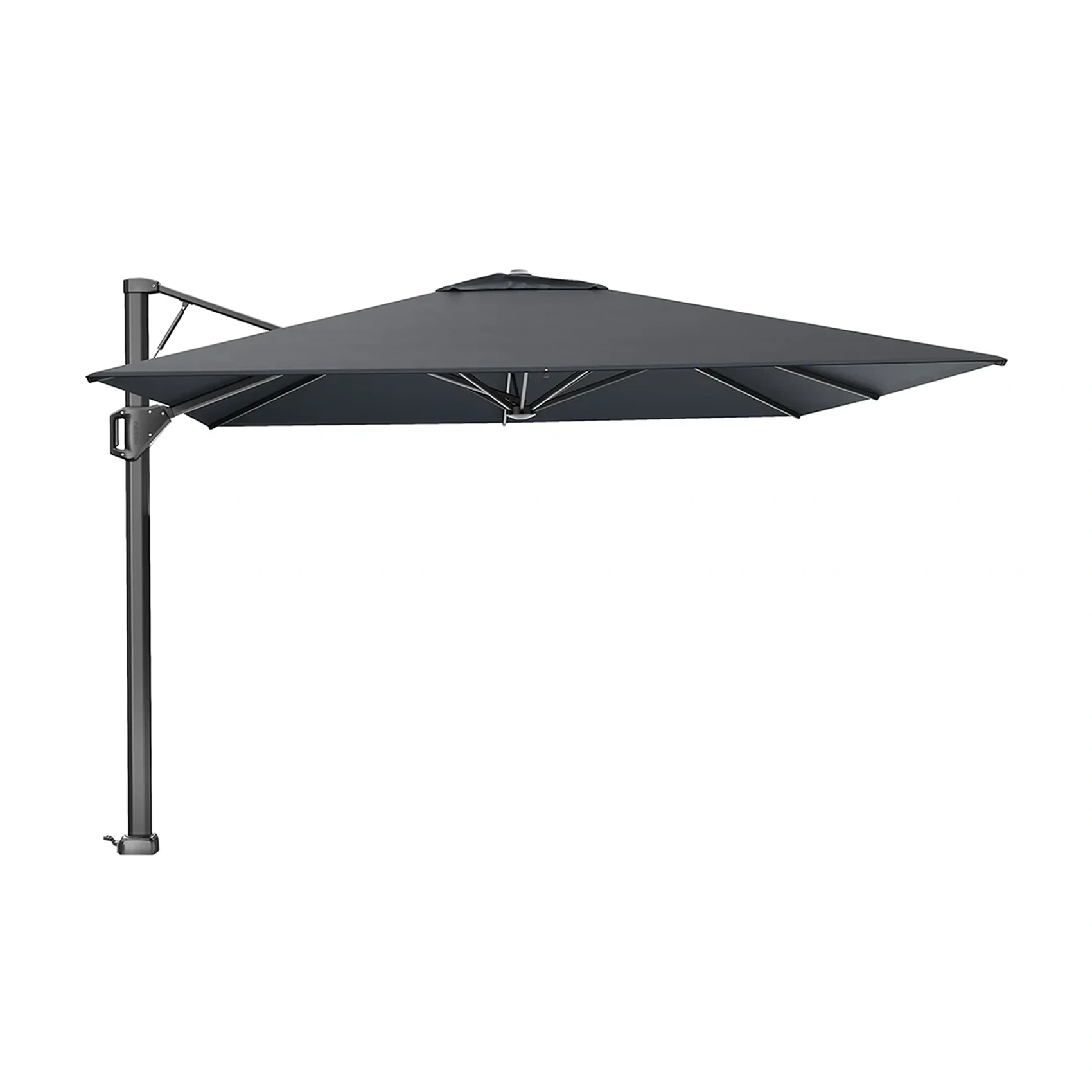 Platinum Sun & Shade frihängande parasoll Beaufort med stativ i färgen antracit och tyg i färgen matt svart. Beaufort är ett vindstabilt hängarmsparasoll. Designad för situationer och platser med mer vind, såsom stora trädgårdar och sjöstränder. Med stort fokus på design och användarvänlighet ger Beaufort säkerhet på blåsiga dagar. Beaufort ska självklart fällas ihop när parasollet inte används för att skydda det från vind.