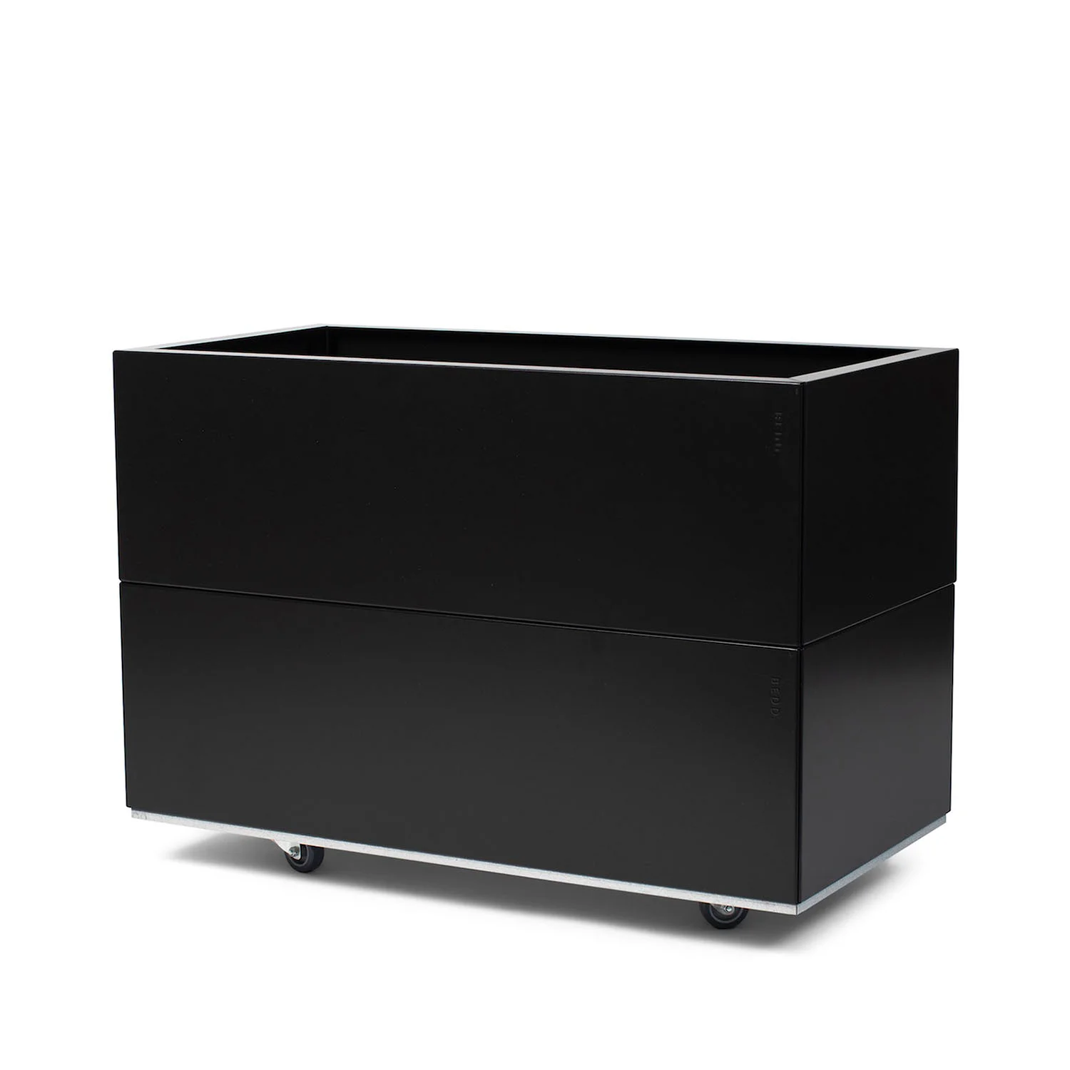 Fyrkantig låda med dränerande bottenplatta och 4 hjul eller ben. En planteringslåda för blommor, jordgubbar eller örter. Intressant att kombinera med andra ramar med olika mått och höjder. Kan även byggas ihop med flera lådor som en sammanhängande lösning.