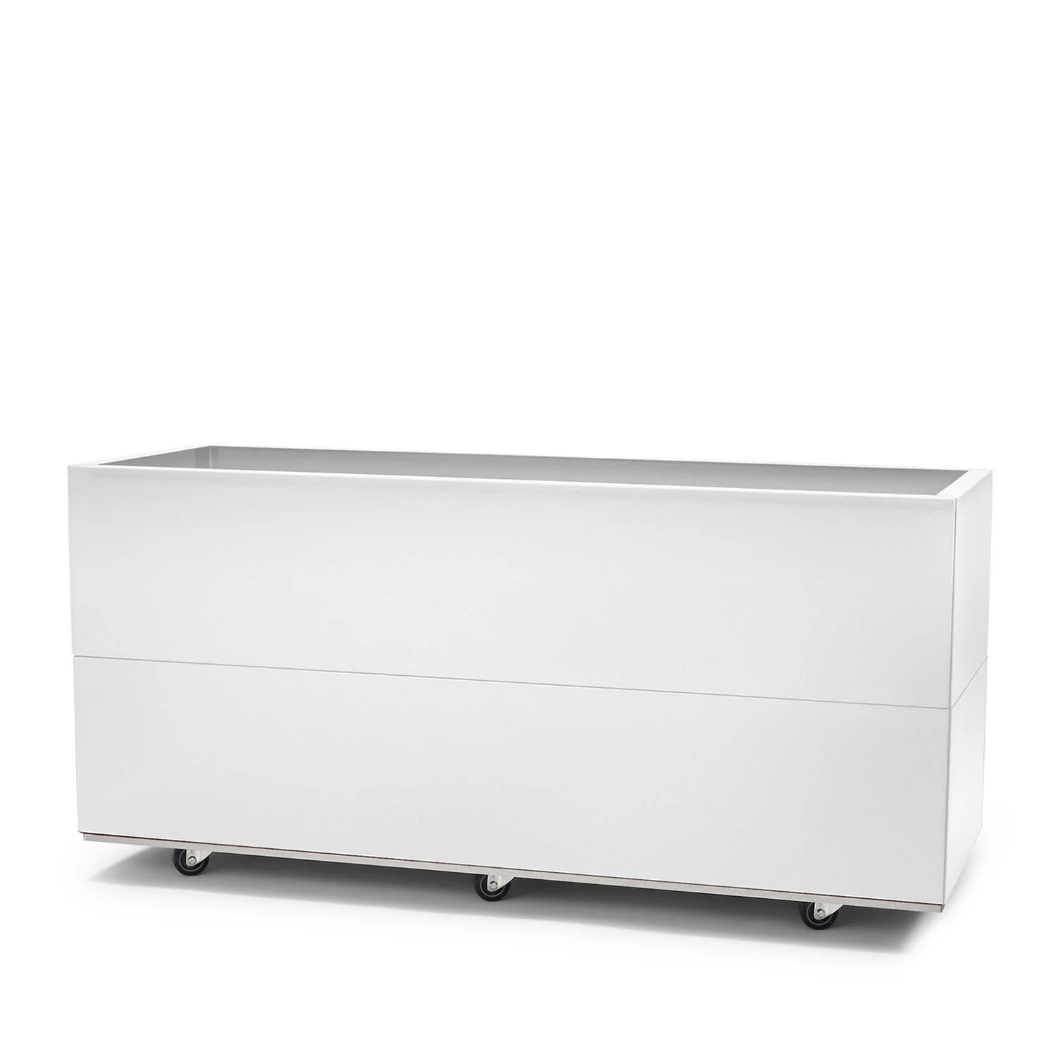 Du kan välja mellan hjul (med eller utan broms) eller ben, beroende på hur flexibel du vill att lådan ska vara. Hjul gör det enkelt att flytta lådan efter sol, vind eller säsong, medan ben ger en stabil och fast placering. Båda alternativen monteras på en dränerande bottenplatta som tål hög belastning.