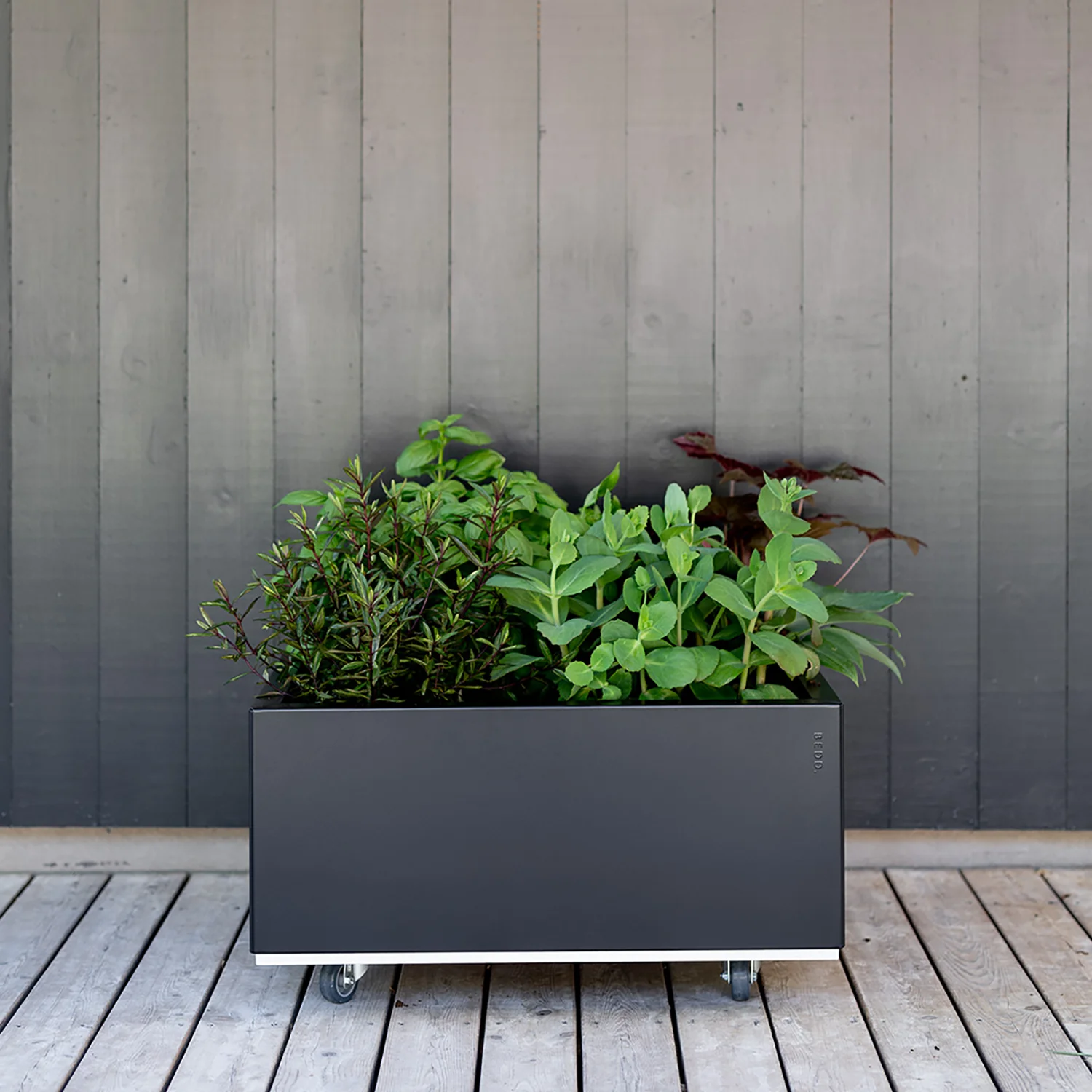 En fin liten balkonglåda som passar till örter eller blommor som inte kräver stor volym jord. Levereras med fyra ramar, bas och hjul i paketet.