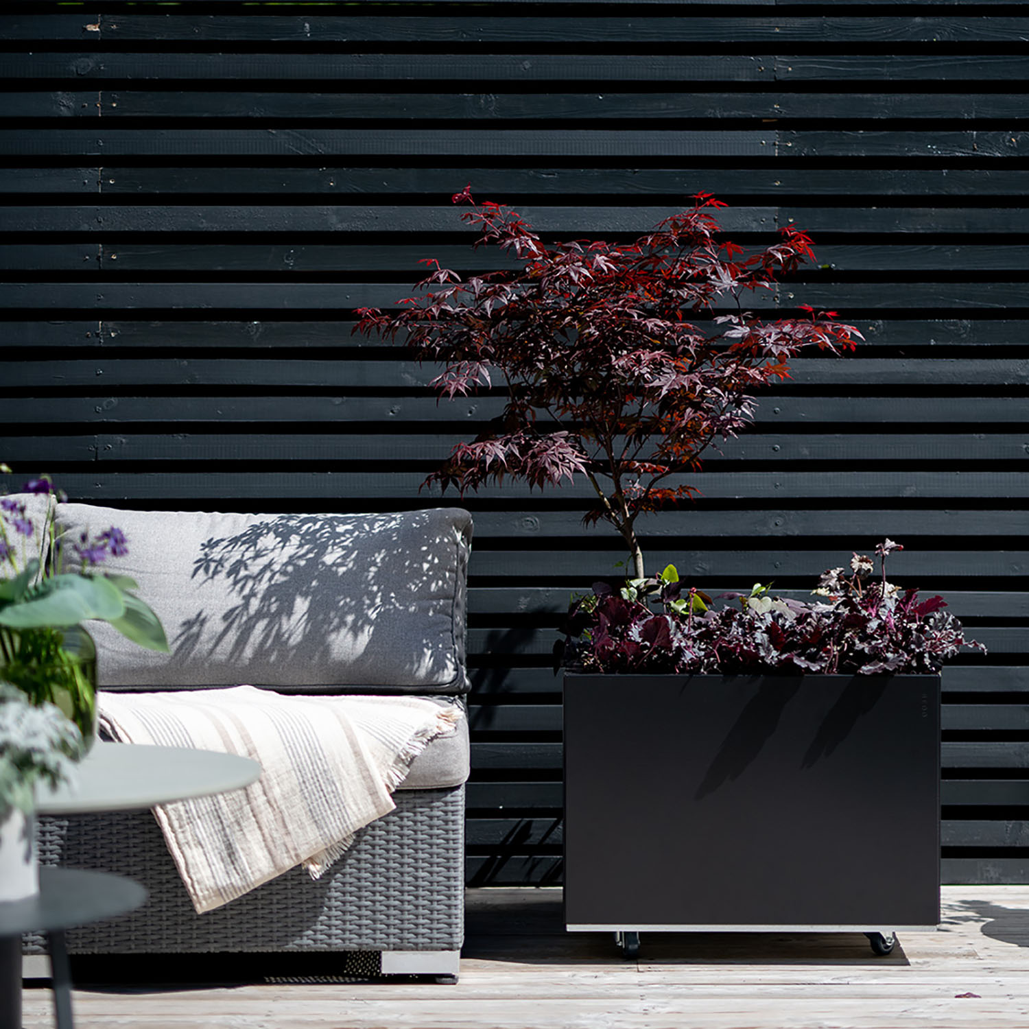 En rymlig och elegant BEDD box utvecklad för att passa små träd och växter med djupa rötter. Denna box är den enda med en panelhöjd på 40 cm, och den kan inte kopplas ihop i ett system med andra BEDD paneler.