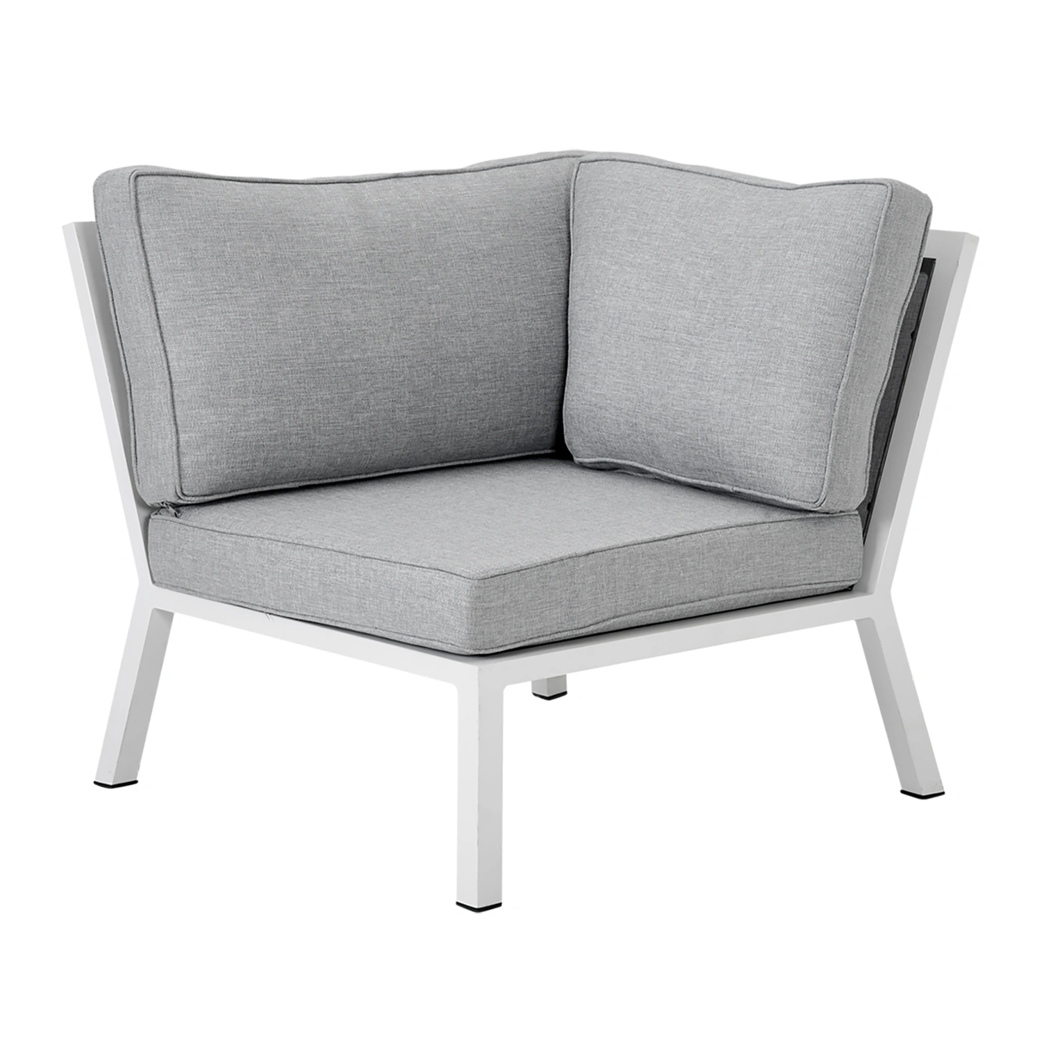 Belfort – en modern loungeserie med mattvit eller svart aluminiumram och gråa dynor. Belfort är extra komfortabel att sitta i, tack vare de tjocka ryggdynorna. I serien finns 4 byggbara soffdelar, fåtölj, och ett bord med skiva av härdat glas. De gråa klädslarna är avtagbara och tvättbara.