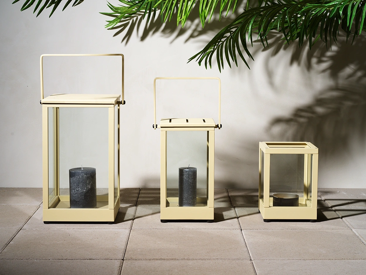 Elegant lykta eller marchallhållare i färgen Lemon från Brafabs Belfort-serie. Denna modell utan handtag är tillverkad i pulverlackerad aluminium med härdat glas på alla fyra sidor och har en höjd på 28 cm. Då denna lykta är öppen, utan lock så är den perfekt för marchaller. Låt marschallen lysa upp och skapa stämning i din utemiljö – perfekt för altanen, balkongen eller uterummet. Justerbara fötter gör det enkelt att placera lyktan stabilt även på ojämna underlag.