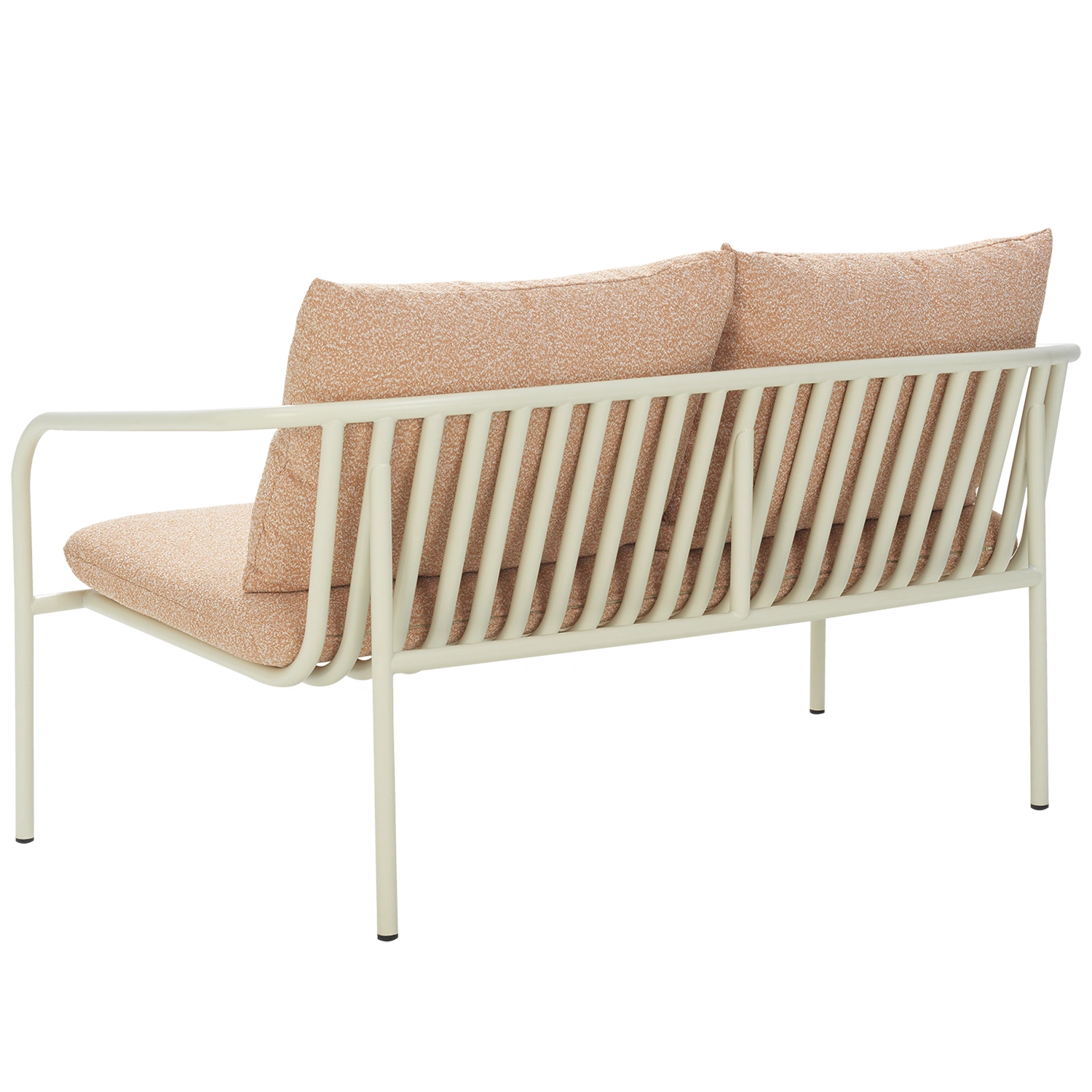 Soffan fungerar lika bra som solitär som i kombination med Bendt-fåtöljen. Tack vare den smarta designen kan fåtöljerna staplas direkt i soffan, vilket gör förvaringen enkel och platsbesparande under lågsäsong. Den öppna konstruktionen ger ett behagligt luftflöde och bidrar till en sval loungupplevelse även under varma dagar.