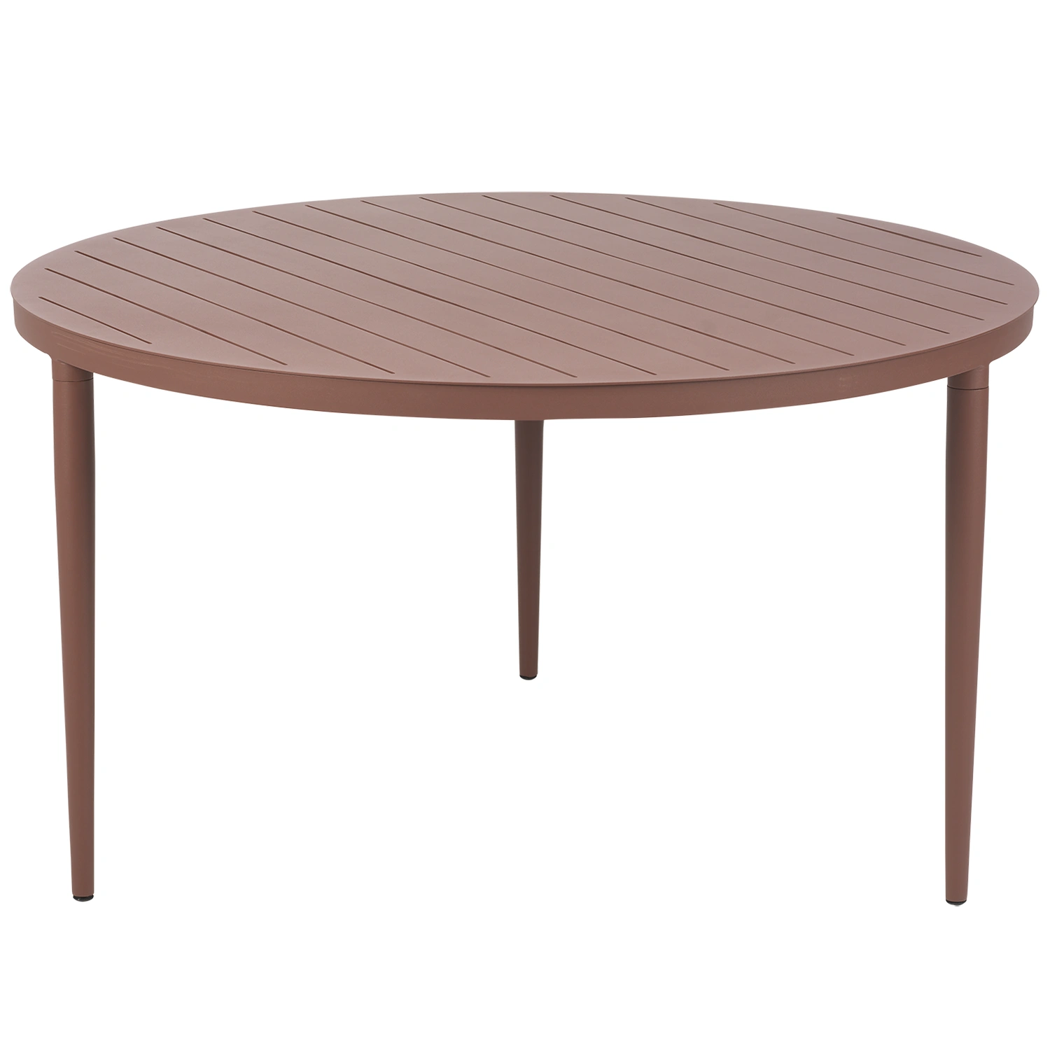 Bigby matbord i färgen Zin Red, med en diameter på 130 cm, är ett rymligt och stilrent alternativ för dig som vill samla många runt bordet. Den runda formen främjar samtal och närhet, medan den ribbade bordsskivan och de avsmalnande benen i aluminium ger ett elegant och luftigt intryck.