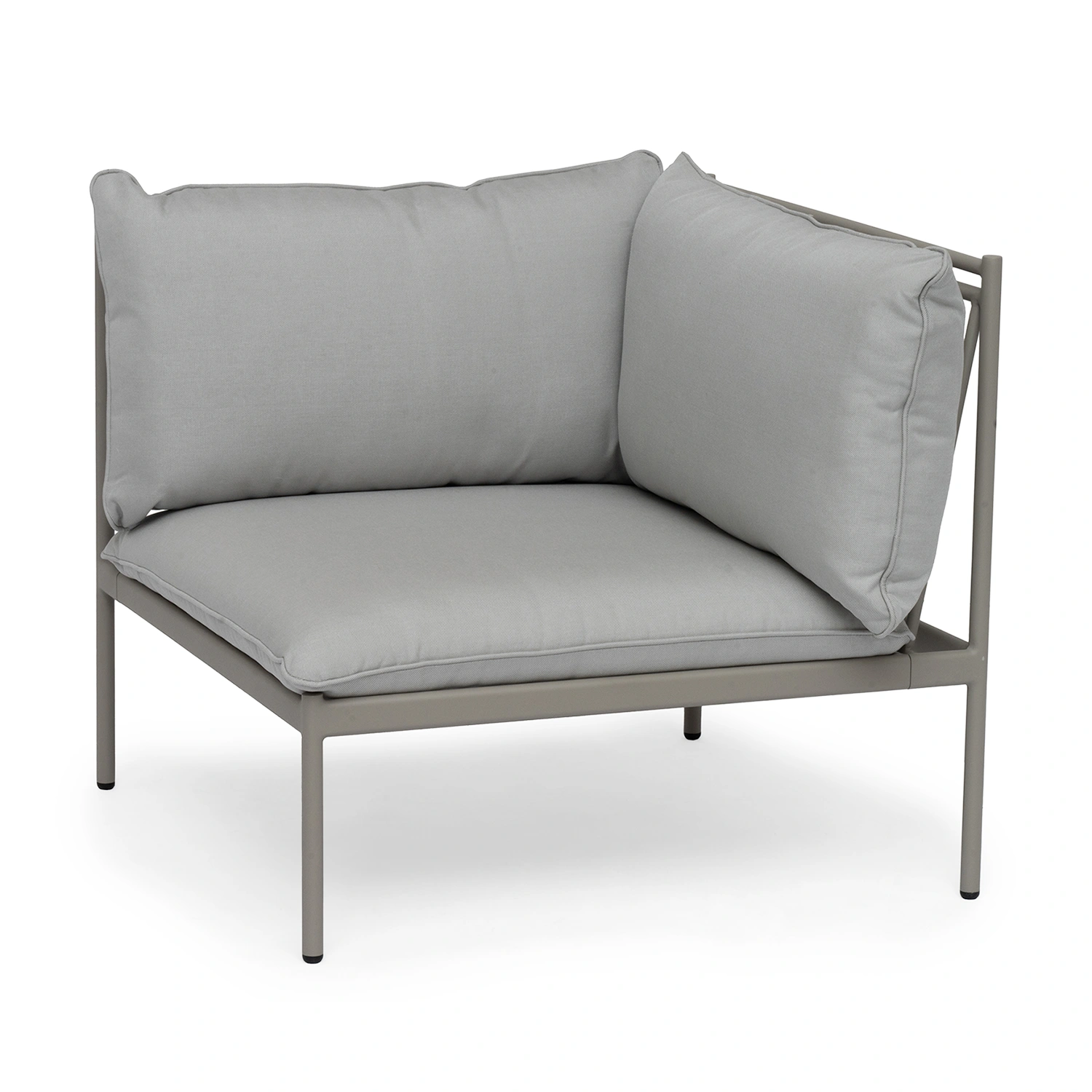 Hörndel i serien Bolmsö från Hillerstorp. Tillverkad i pulverlackerad aluminium med dynor i fjädergrå olefin.