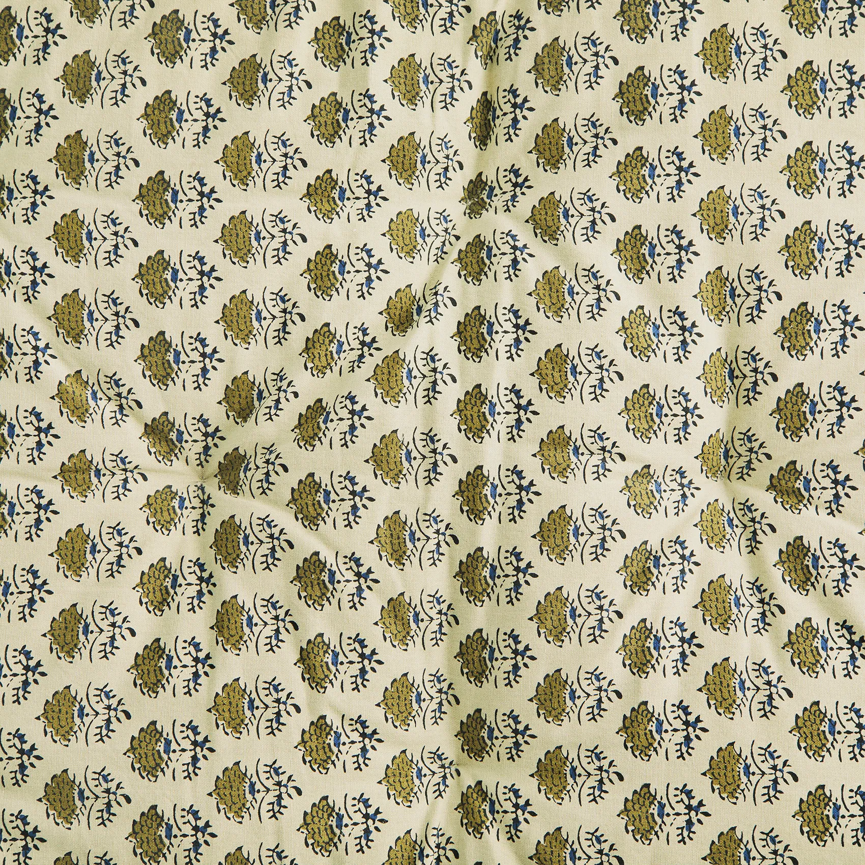 Bomullsdyna blocktryckt - offwhite/grön 100x60 cm