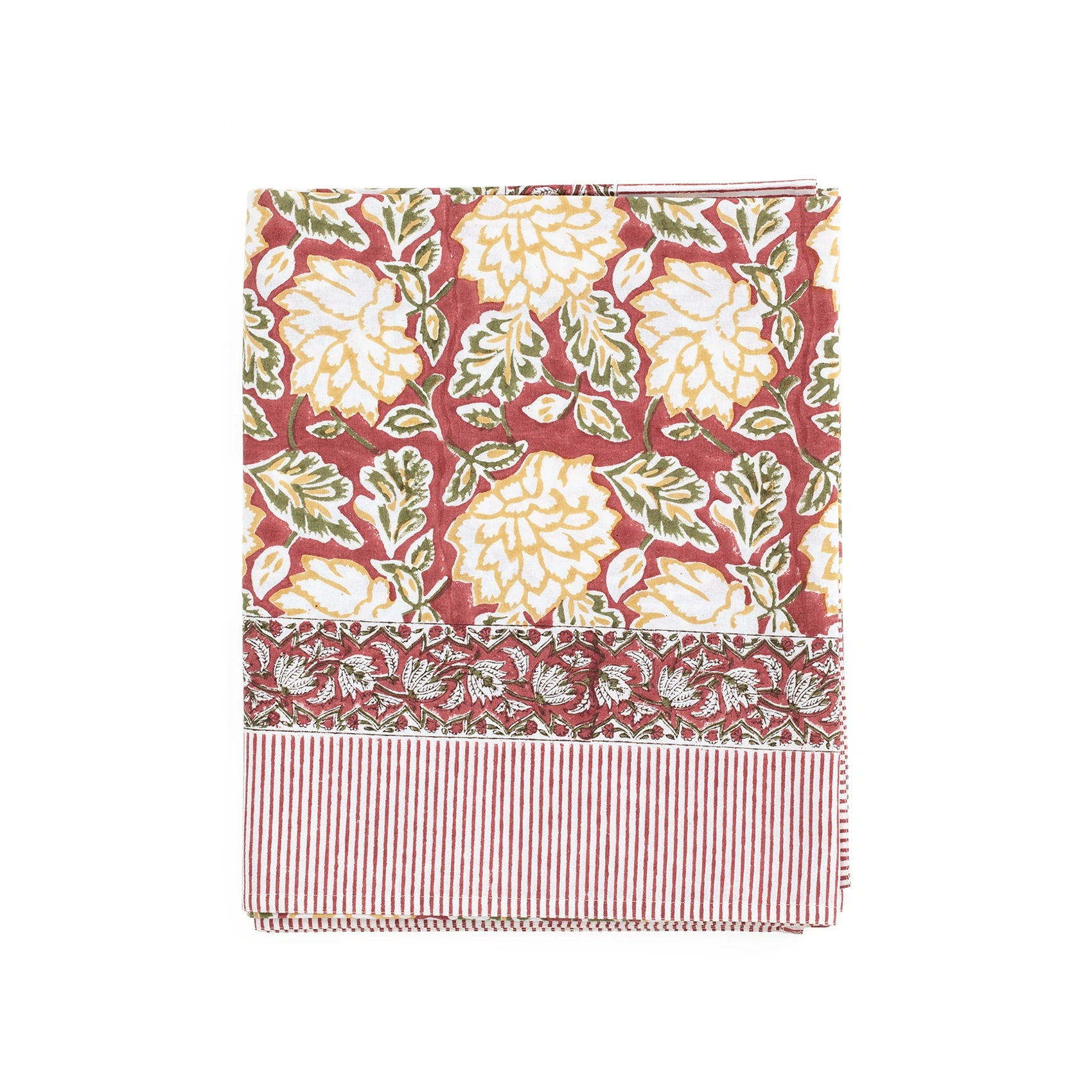 Den här duken är tillverkad av högkvalitativ ekologisk bomull och handtryckt med den uråldriga träsnittskonsten och ger en lekfull touch till alla dukningar. För en komplett look, styla med matchande bordstabletter och servetter efter eget val.