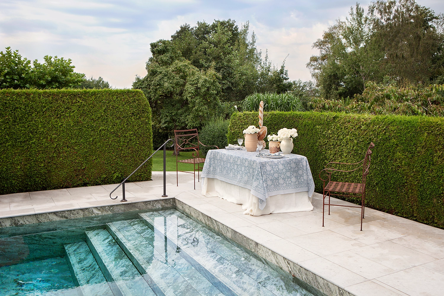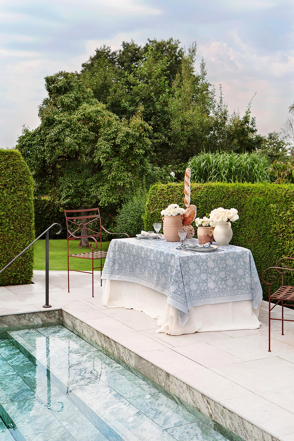 Bordsduk Indian Rose dusty blue, Ø220 cm