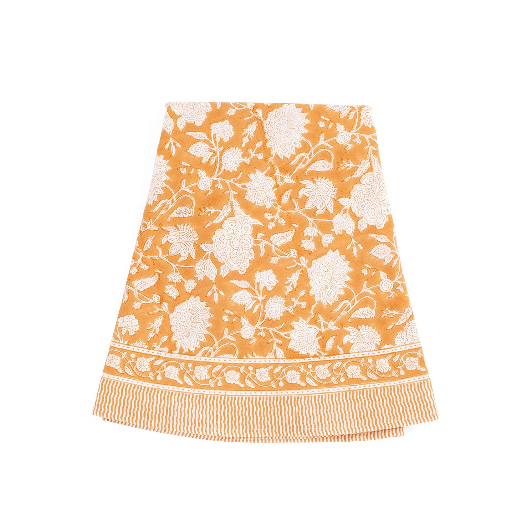 Bomullsduk med Indian Rose mönster i färgen orange. Indian Rose är ett av Chamois nyare mönster. På den här duken är mönstret tryckt med traditionellt blocktryck på vitt bomullstyg. Vackert och klassiskt mönster som kommer i flera färger.
