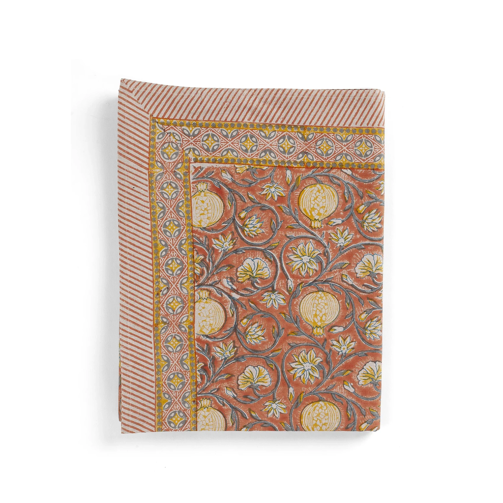 Duken är tillverkad av slitstark högkvalitativ bomull och handtryckt med den antika konsten att trycka tyg med träblock.