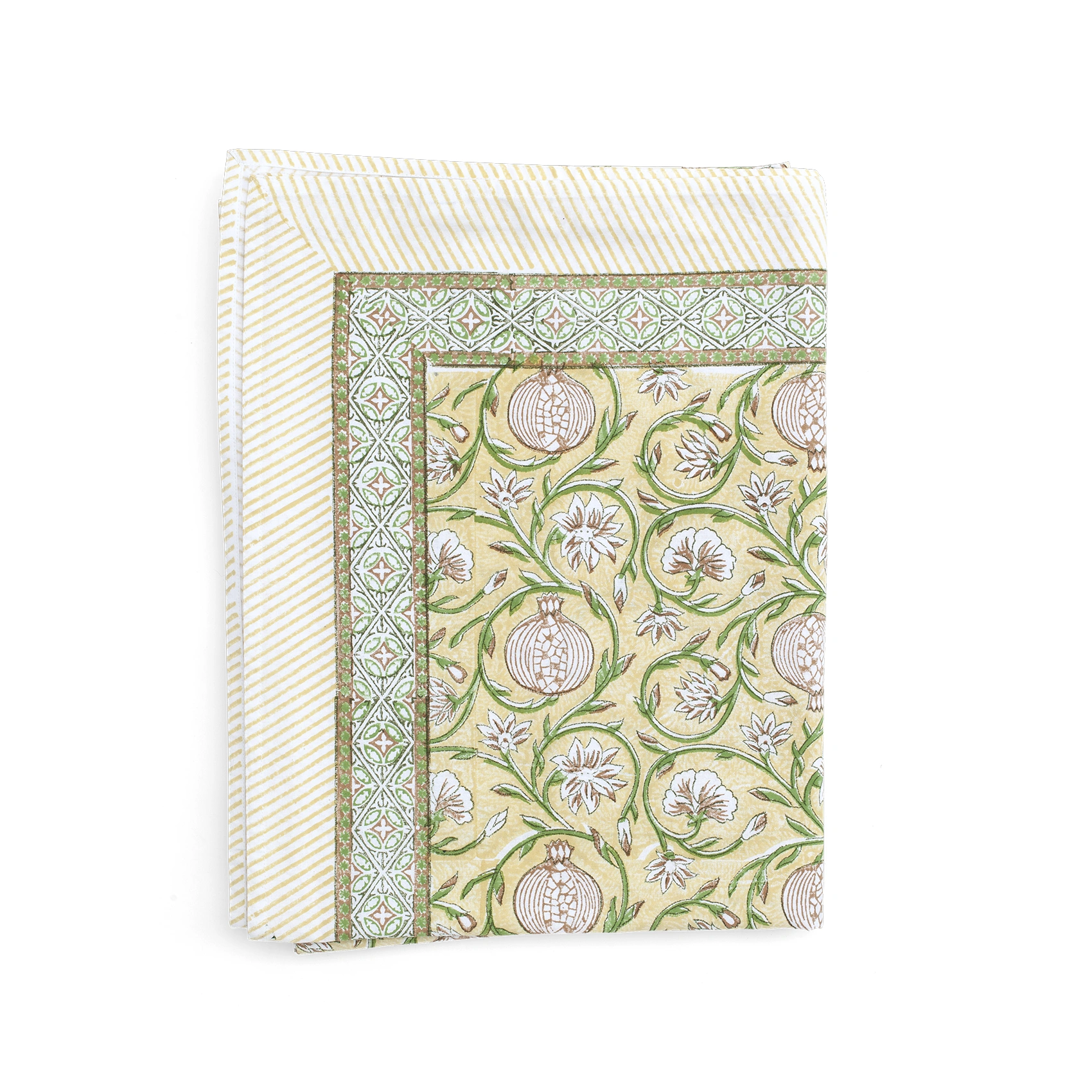 Duken är tillverkad av slitstark högkvalitativ bomull och handtryckt med den antika konsten att trycka tyg med träblock.