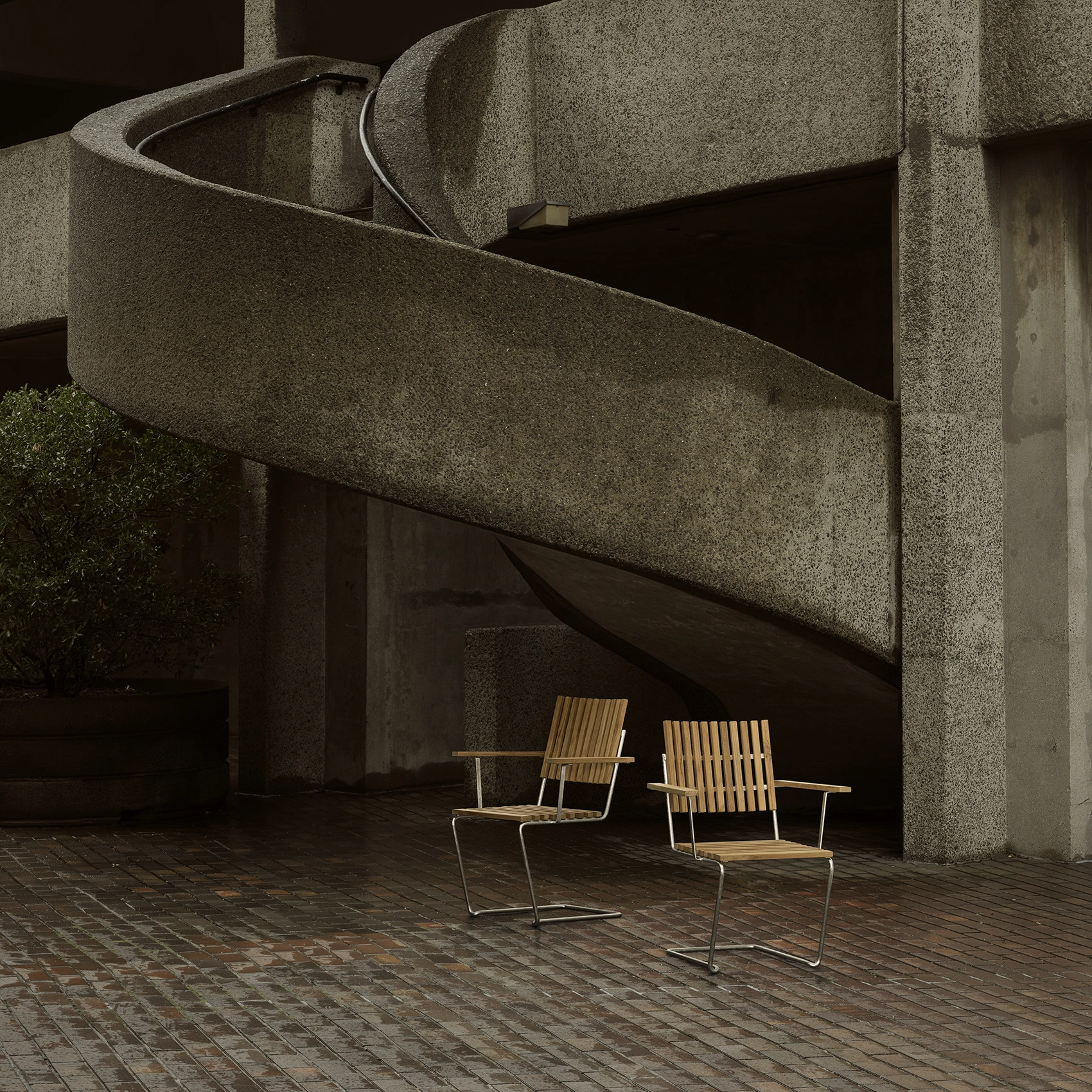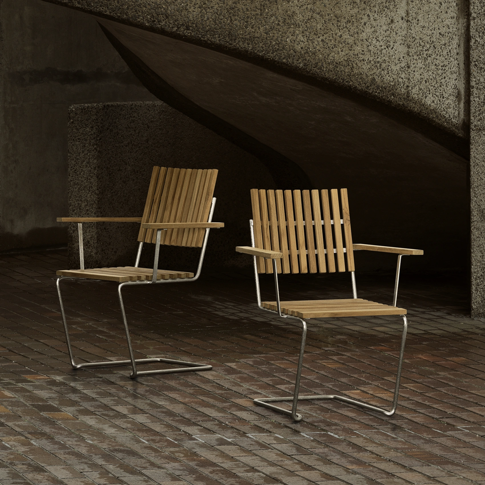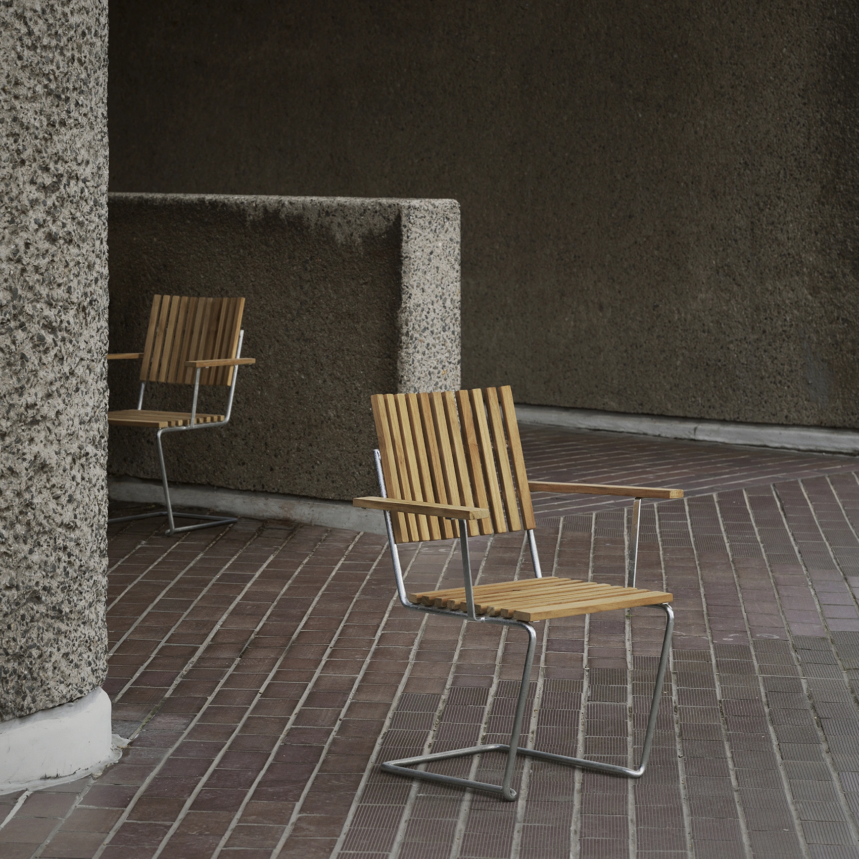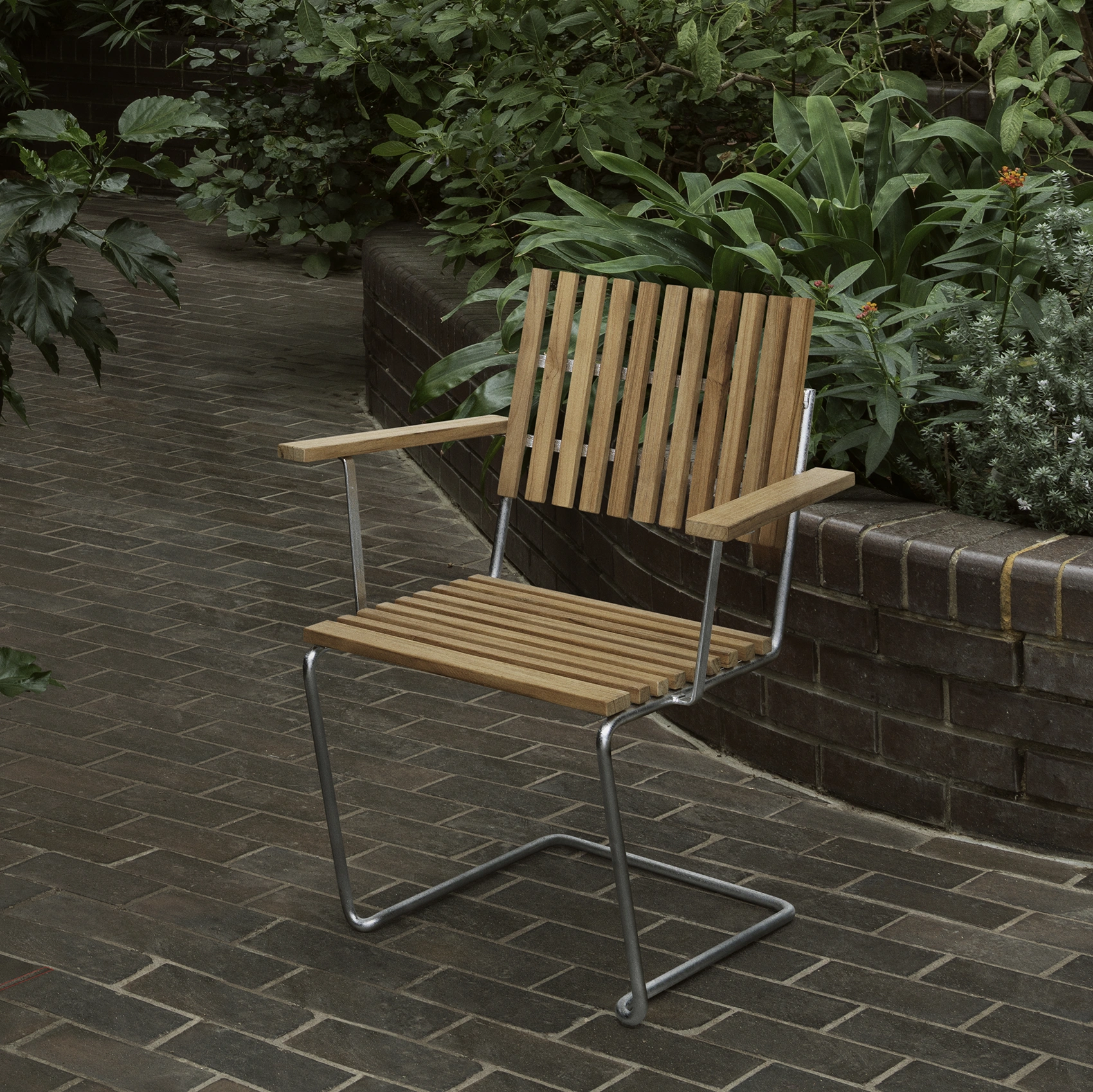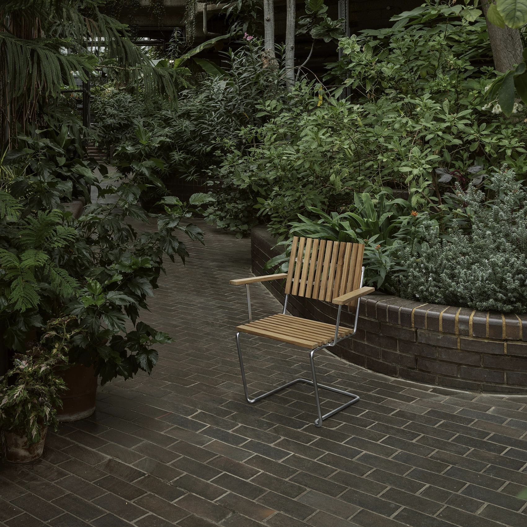 Bovik Stol är en modern tolkning av den klassiska A2-fåtöljen, djupt förankrad i Grythyttan Stålmöblers tradition av hantverk och stålsmide. Stolen är skapad för utomhusbruk och kombinerar varm teak med ett underrede i stål, tillgängligt i svart eller varmförzinkat utförande. Det ikoniska stativet, som delas med Klassikerserien, knyter Bovik till Grythyttans designarv. Samtidigt ger den slankare träprofilen och de elva ribborna i ryggstödet ett lättare och mer modernt uttryck. Bovik stol är en naturligt förlängning av Klassikerserien och kan matchas med Bovik Bord.