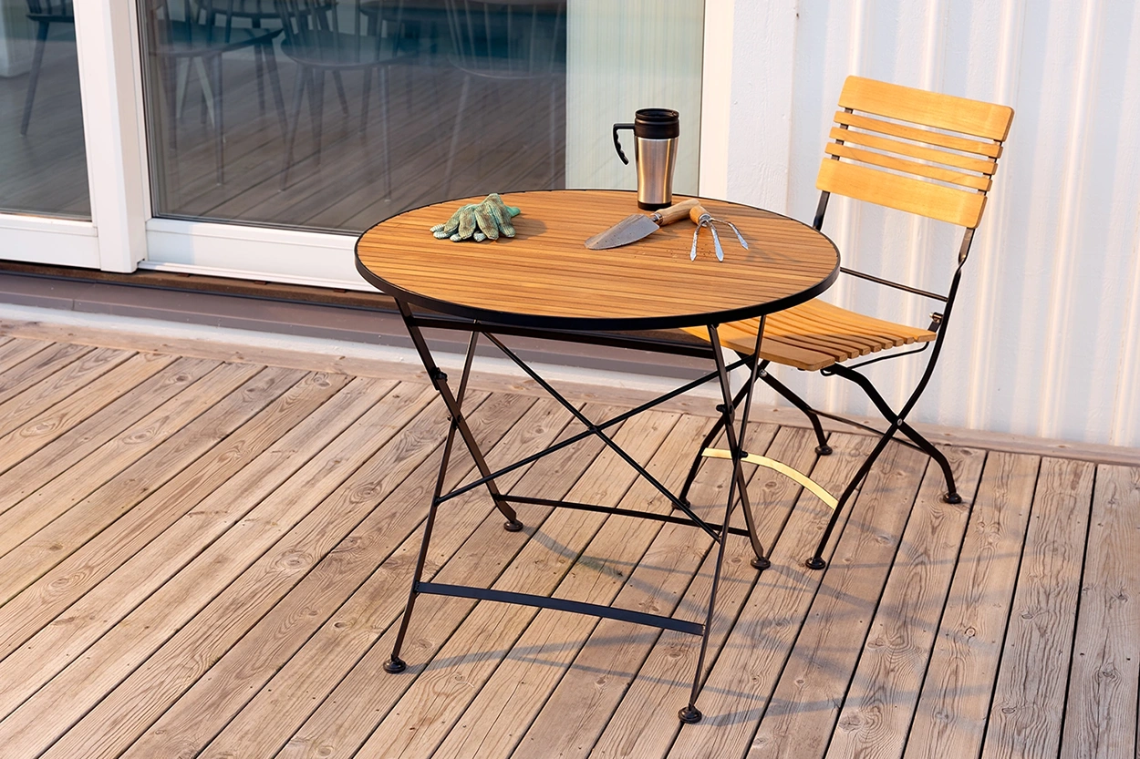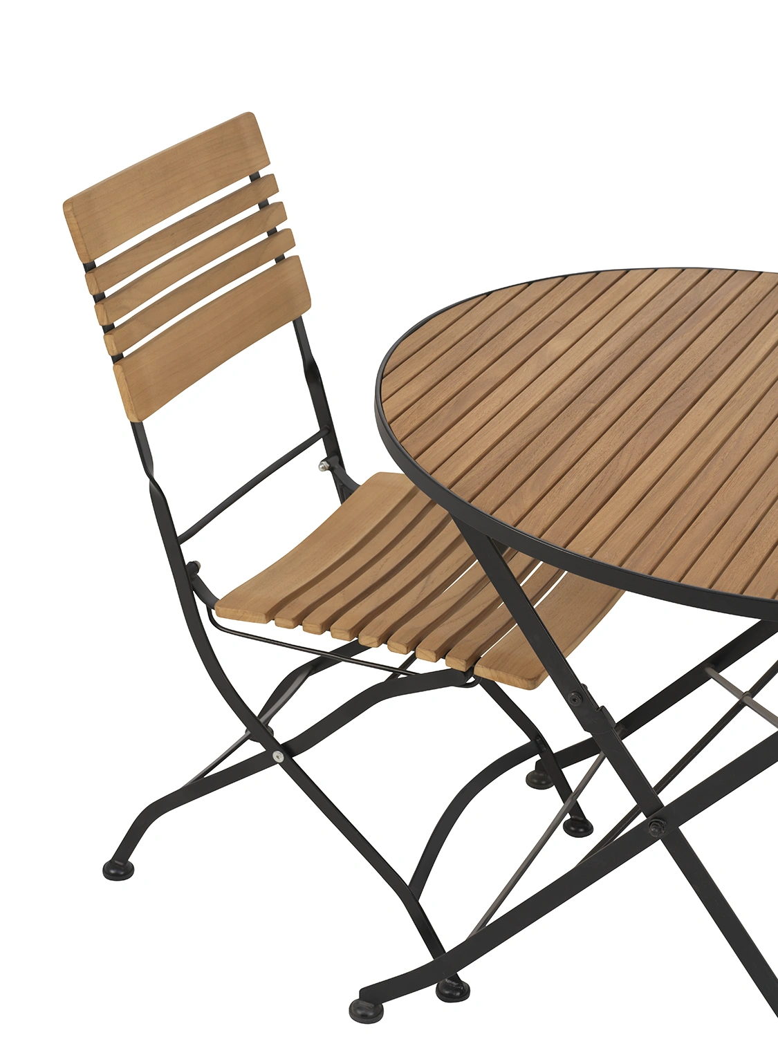 Brewer är en tidlös fällstol som för tankarna till charmiga bistrokaféer och soliga innergårdar. Den klassiska designen kombineras med moderna materialval för att skapa en stol som är lika praktisk som stilren. Den svarta, dubbellackerade stålstommen ger ett robust och hållbart intryck, medan sits och rygg består av släta ribbor i FSC®-certifierad teak – ett naturligt material som åldras vackert med tiden.