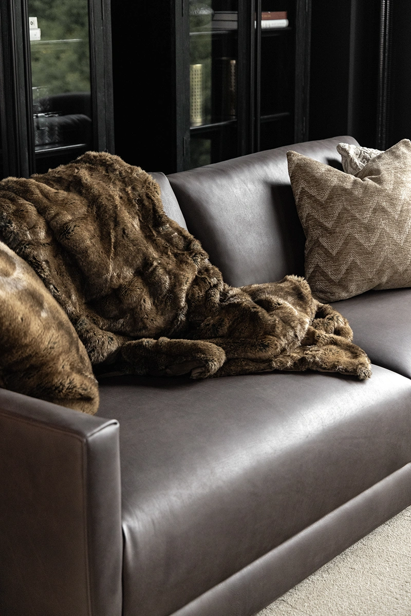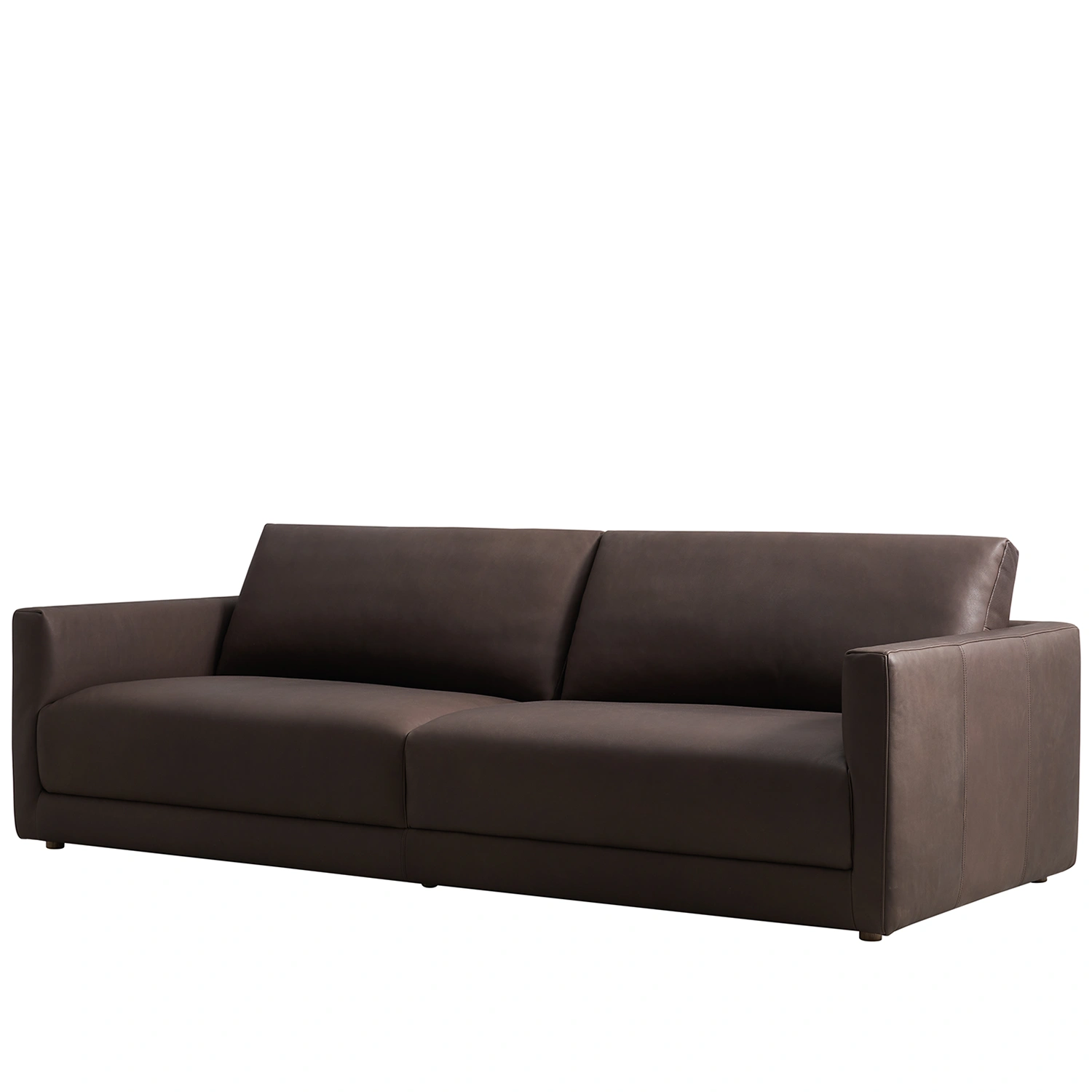 En modern skinnsoffa med generösa proportioner och ett stilrent, helklätt uttryck – designad för att erbjuda både komfort och visuell tyngd. Soffan är klädd i exklusivt fullnarvsskinn som åldras vackert och utvecklar en unik, levande patina över tid. Den mjuka, djupa sitsen tillsammans med de raka linjerna skapar ett avslappnat men samtidigt arkitektoniskt intryck.