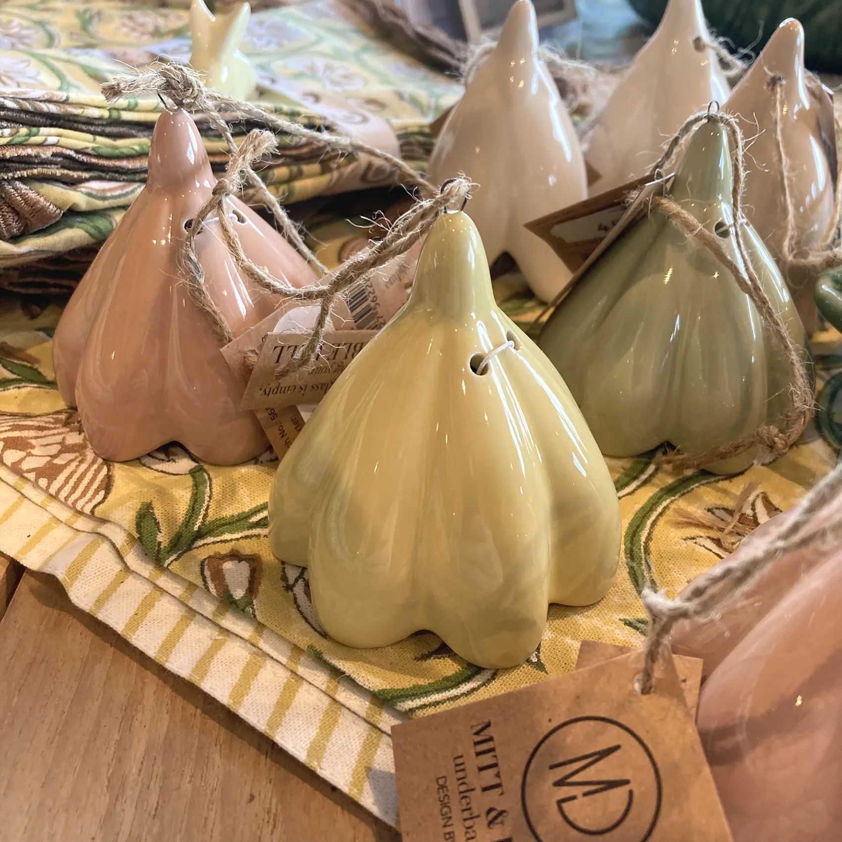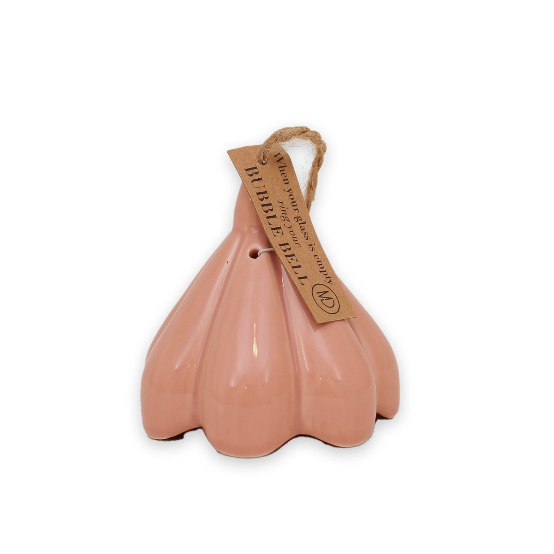 Bubble Bell är en dekorativ liten bjällra i keramik, formad som en blomma med inspiration från snöklockor och liljekonvaljer. Den mjuka, organiska formen och den rosa färgen gör bjällran perfekt i påskriset, som detalj i en dukning, som dekoration i ett stilleben eller som en personlig present.