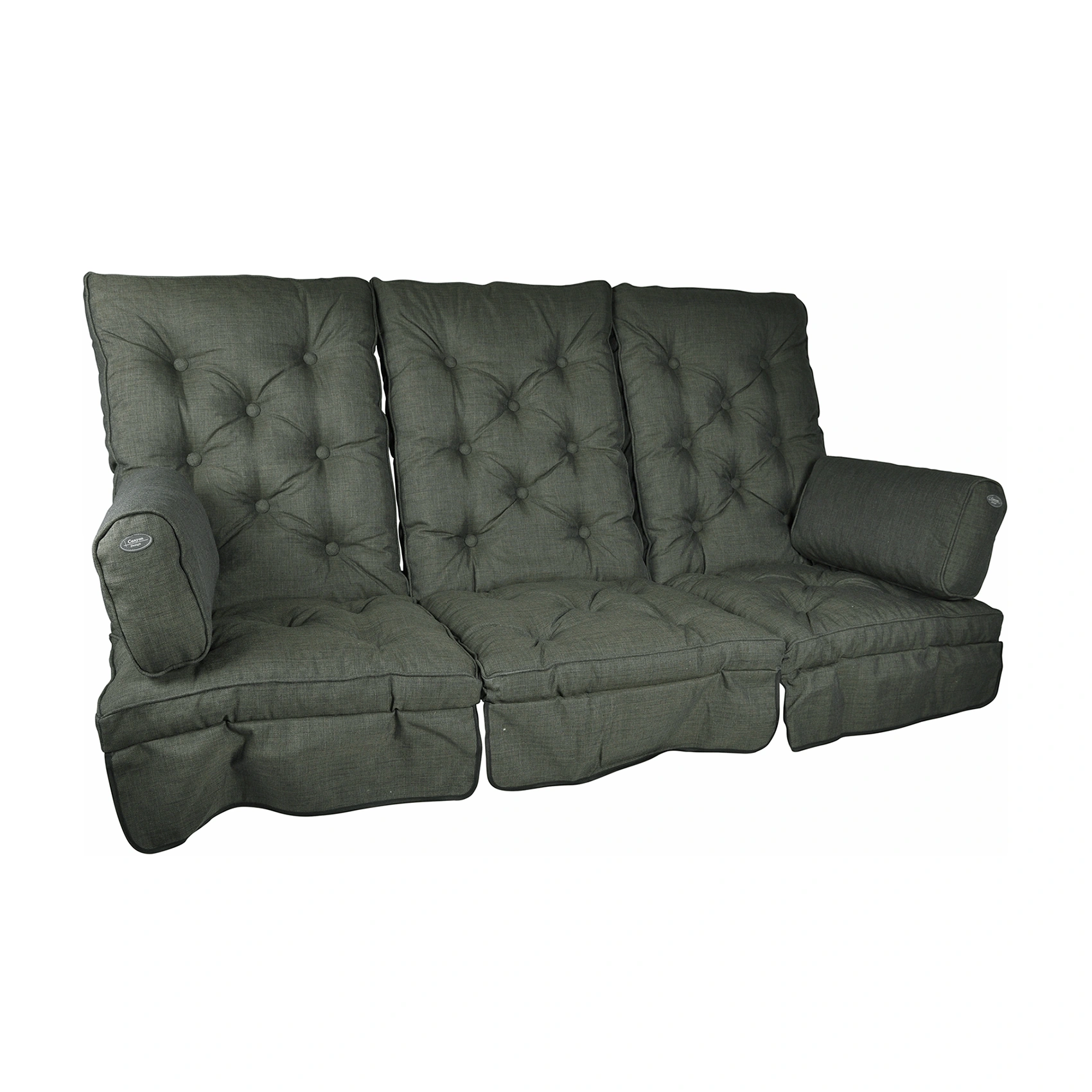 Dynorna och sidokuddarna är boxsydda och är sydda med kederlist, knapparna är klädda och sidokuddarna har var sitt emblem. Mellan sitsen och ryggen sitter två par snören för möjlighet att knyta fast dynan i hammocken. Dynorna har framsida av olefintyg och baksida av svart Nonwoven, stoppningen är riven polyeter.