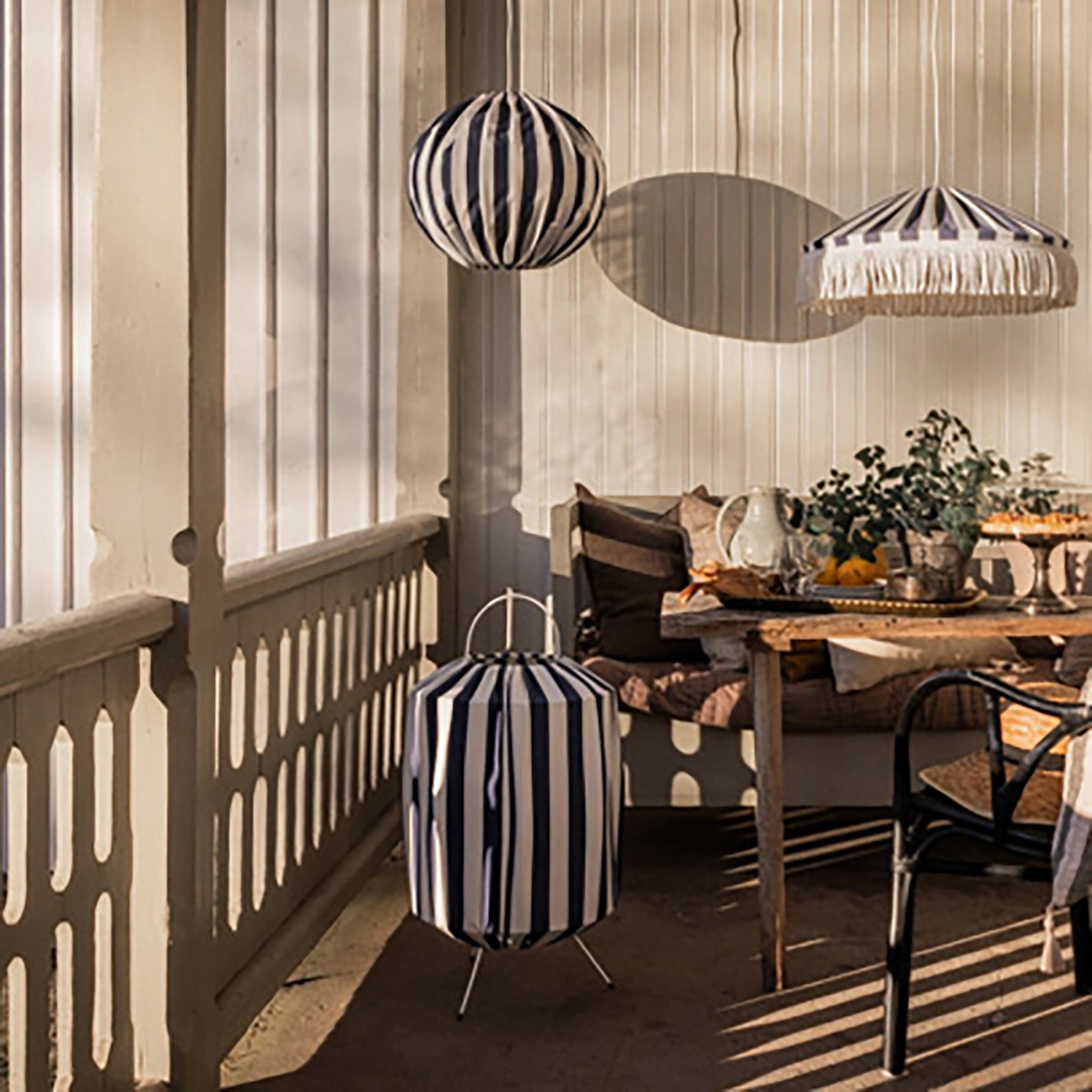 Under härliga sommarkvällar sprider Capri ett behagligt ljus och skapar en härlig atmosfär på balkong och uteplats. Lampan är tillverkad av väderbeständiga material där tyget är smuts/vatten avvisande, UV-beständigt och har hög färgfasthet vilket betyder att det står emot starkt soljus och kommer inte att blekas av att stå utomhus. Den 2,5 m långa gummikabeln gör placeringen enkel och flexibel.