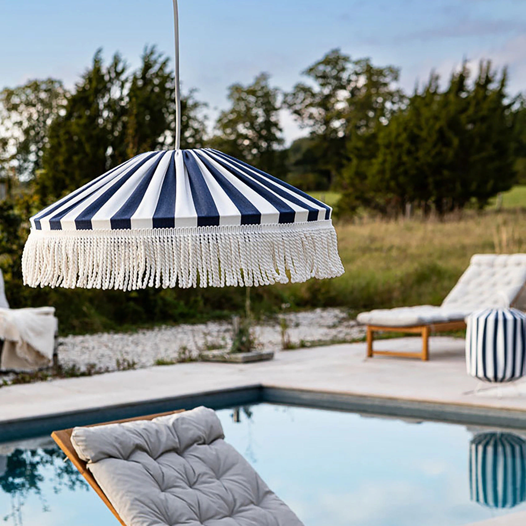 Capri taklampa randig blå/vit Ø45 cm