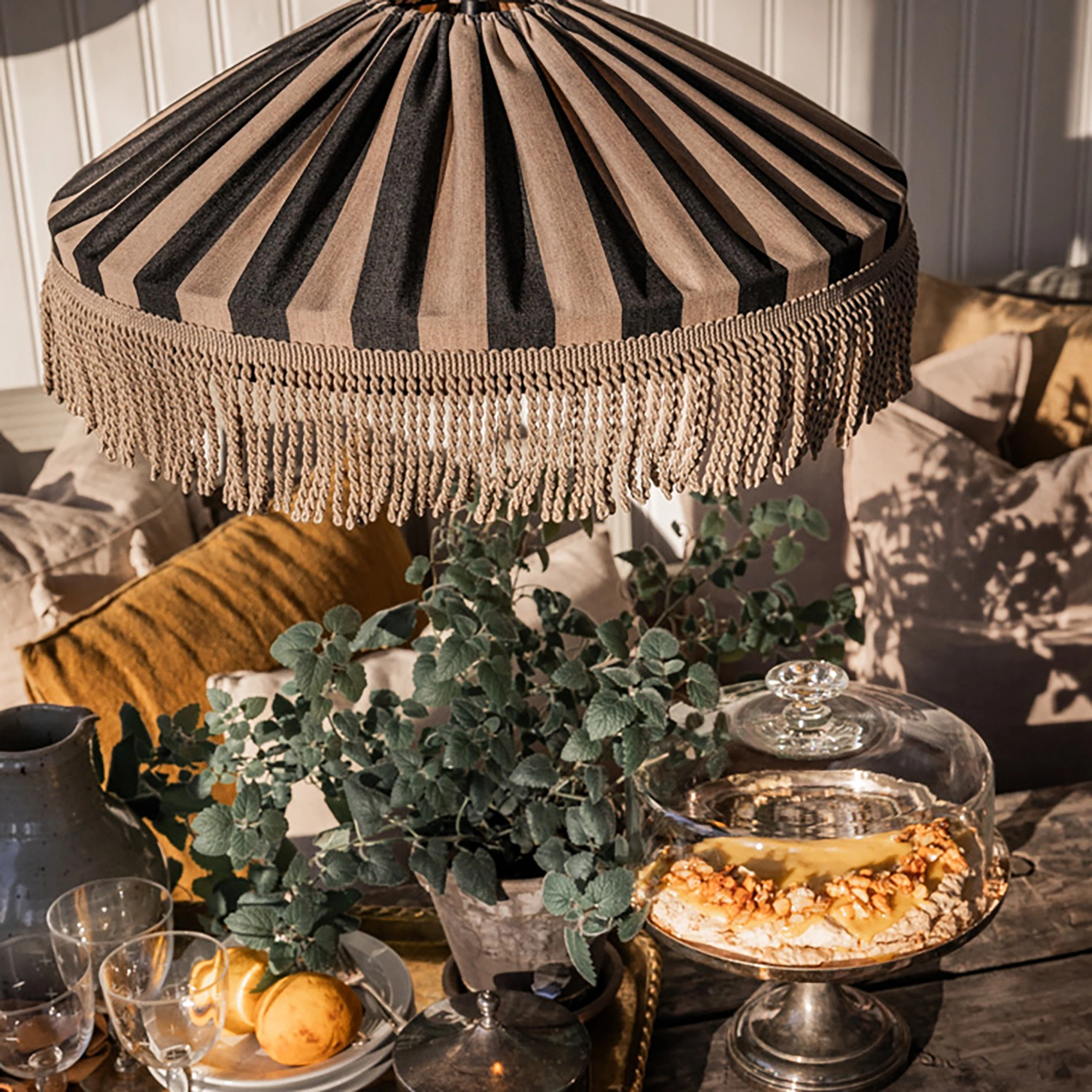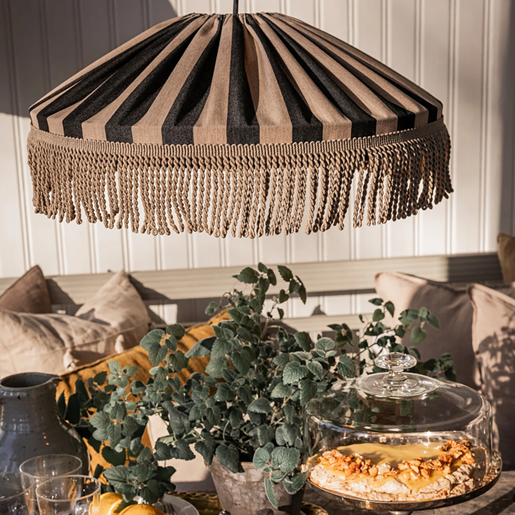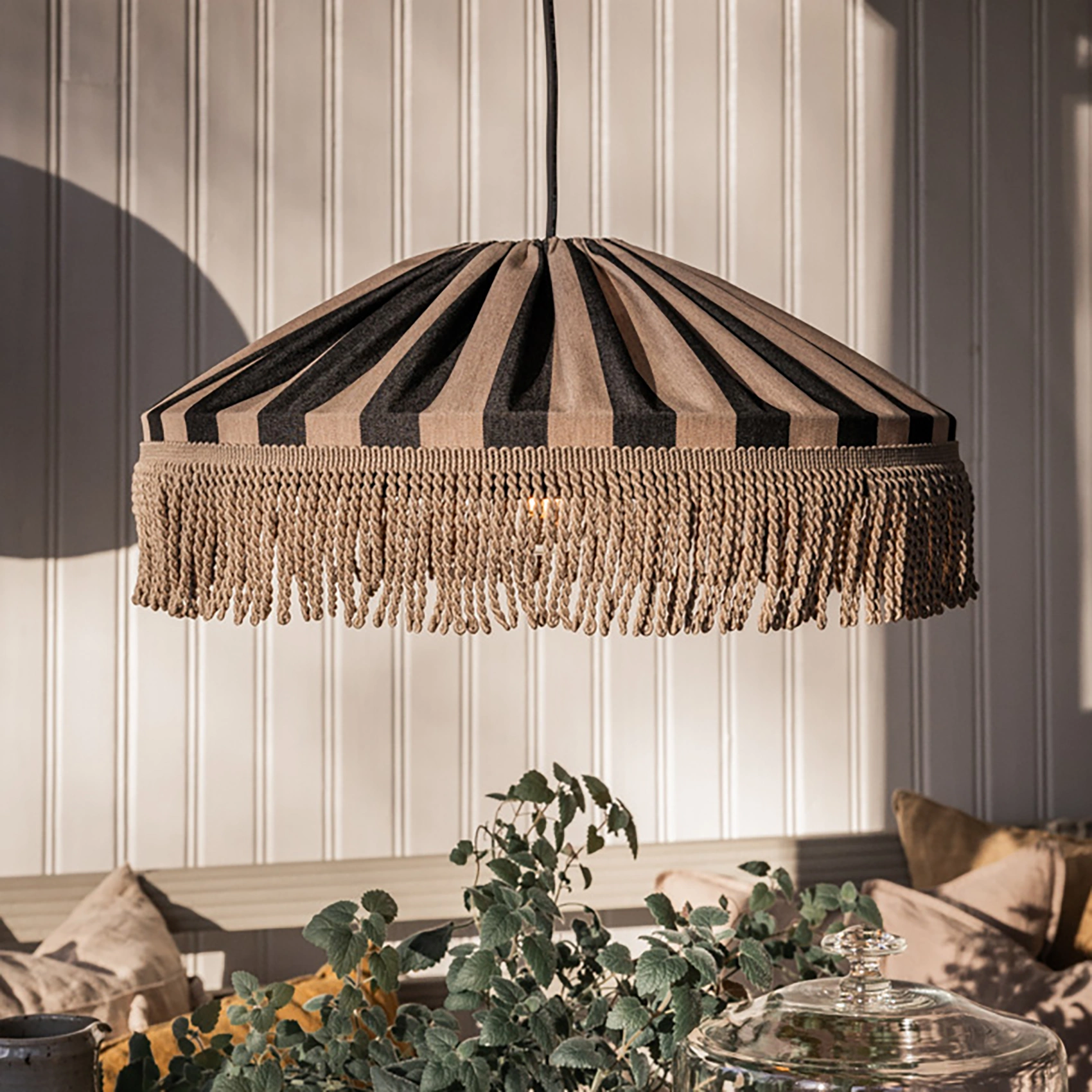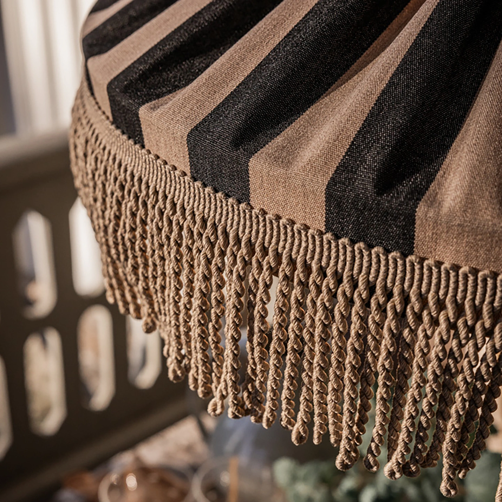 Capri taklampa med frans taupe/svart Ø50 cm