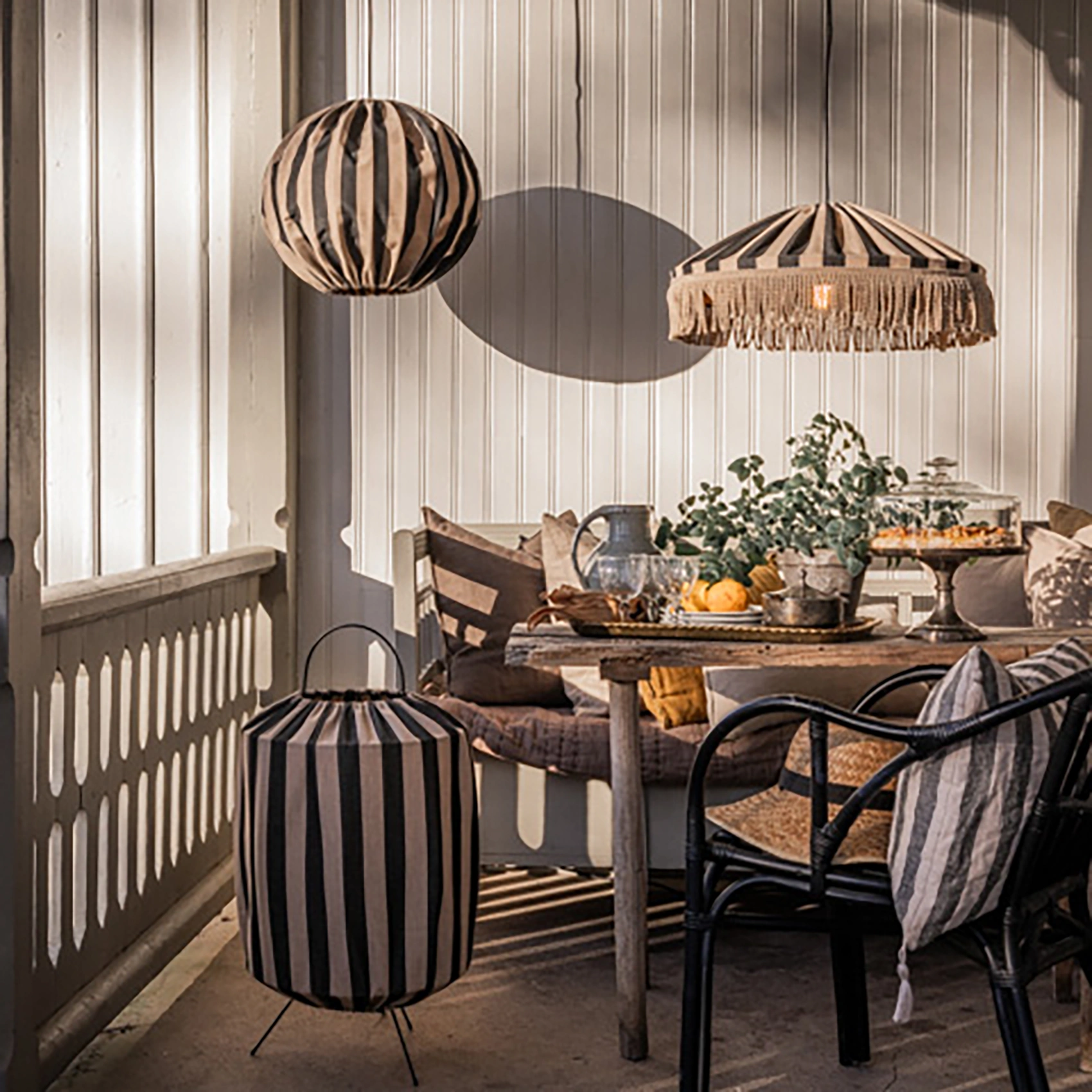 Capri taklampa randig taupe/svart Ø45 cm