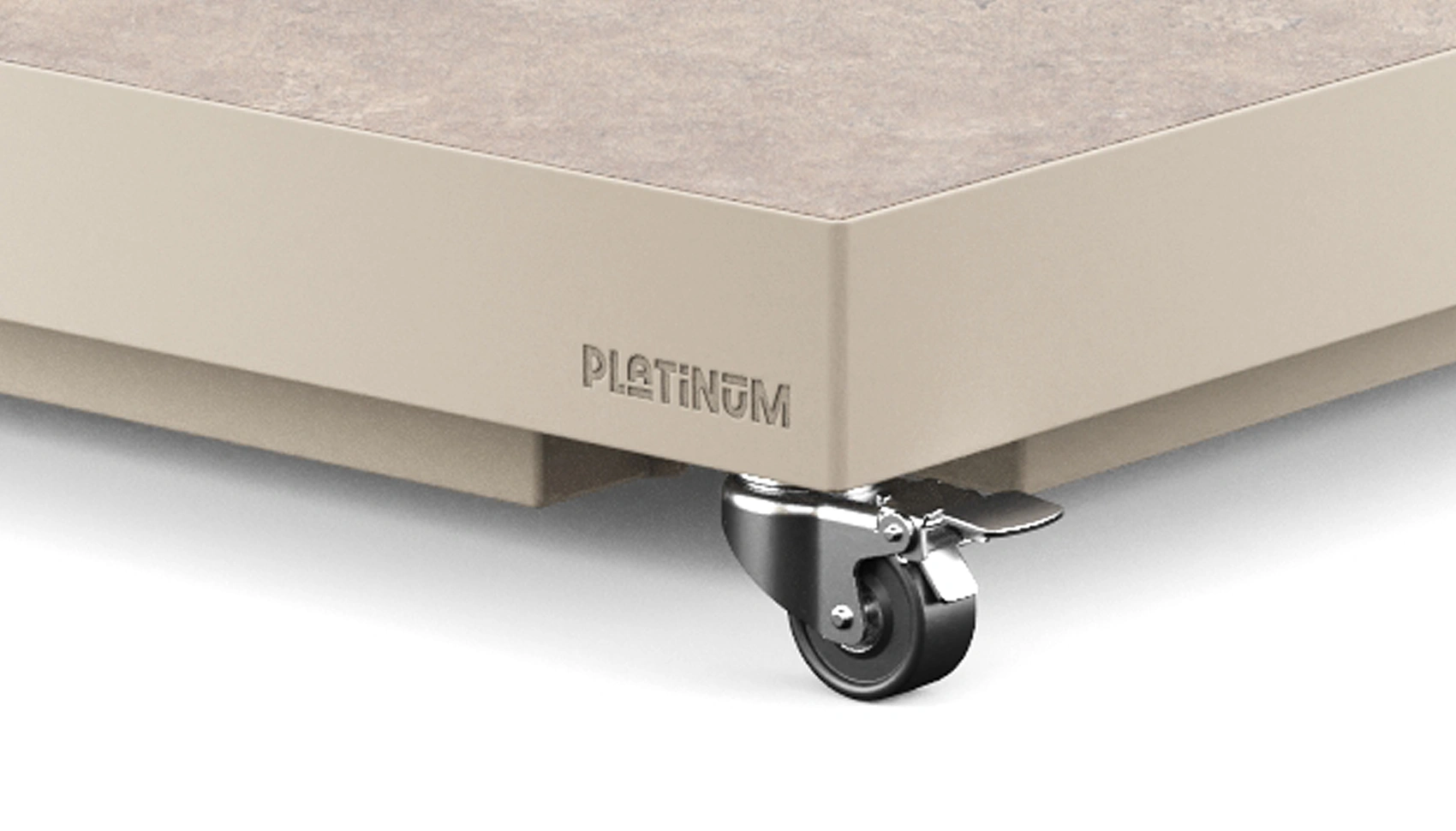 Ett vackert parasoll förtjänar en vacker fot! Ceramica är den perfekta blandningen av premiumstil och stabilitet. Ceramica parasollfot är stabil och lätt att flytta på grund av de stora hjulen. Parasollfoten fylls med sand som täcks med en stark och väderbeständig keramisk top.