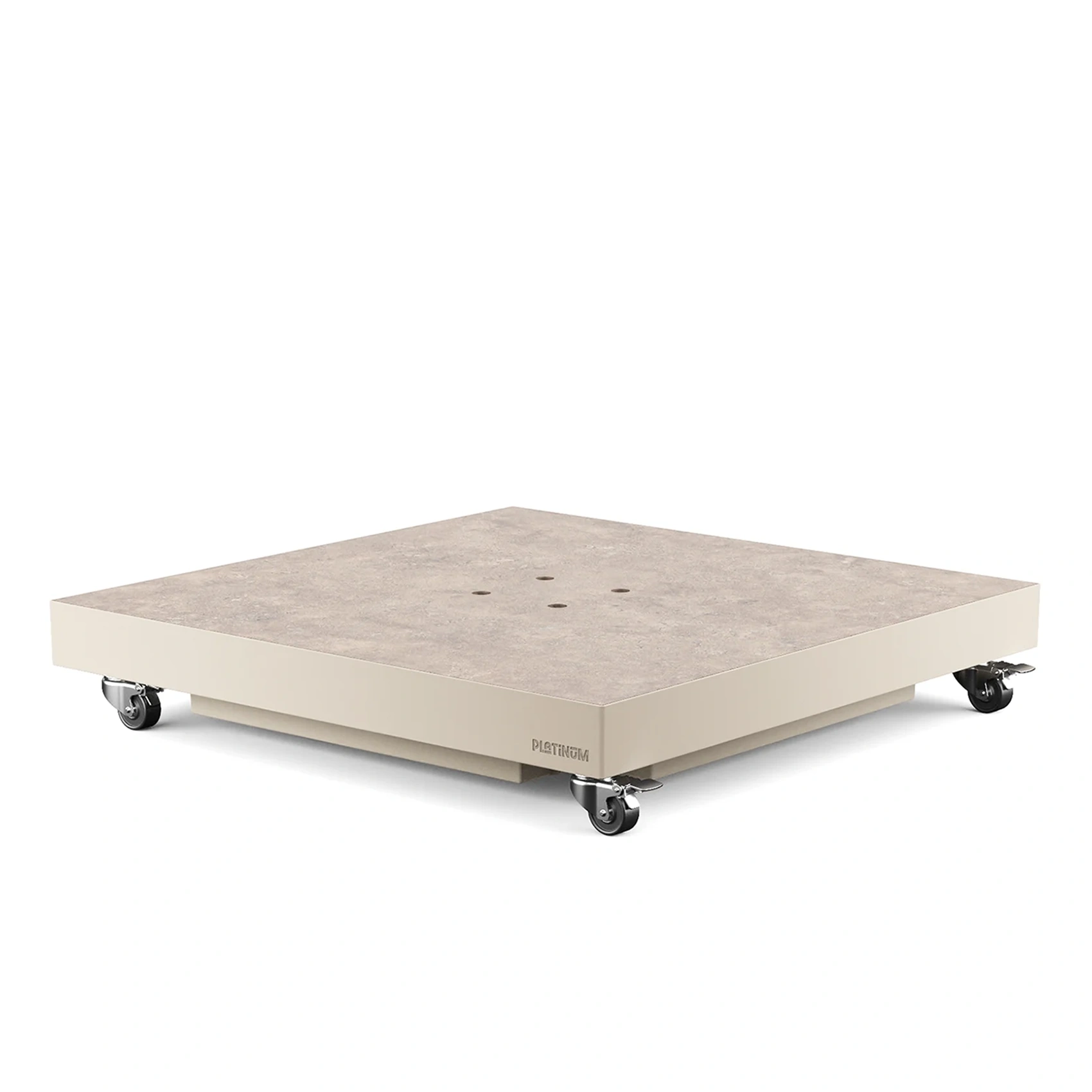 Ceramica parasollfot i färgen sandstone för hängarmsparasoller är stabil och lätt att flytta på grund av de stora hjulen. Parasollfoten fylls med sand som täcks med en stark och väderbeständig keramisk top. Parasollfoten passar till Hängarmsparasoller från Platinum Sun & Shade.