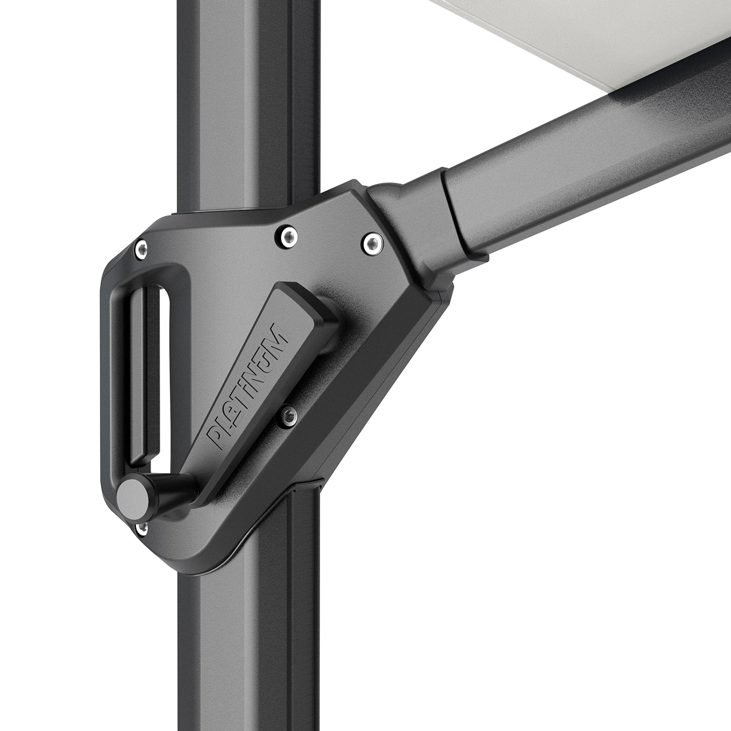 Parasollet levereras utan bas eller fotkryss. Parasollet kräver en parasollfotsvikt minst 120 kg. Vi rekommenderar att du placerar detta parasoll på en parasollfot från Platinum Sun & Shade. Dessa är försedda med hjul så att parasollet är lätt att flytta. Platinum Sun & Shade erbjuder även In-Ground parasollfötter som kan grävas ner eller gjutas fast i marken. Detta ger dig mer utrymme på din uteplats.