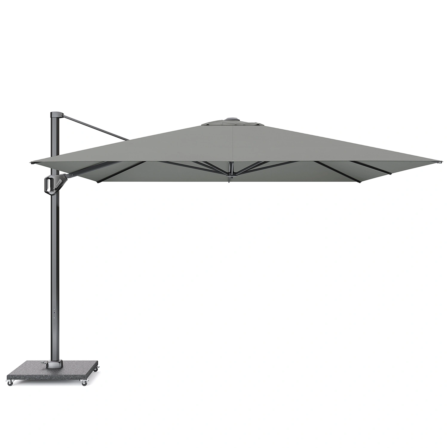 Challenger T¹ frihängande parasoll med teleskopstativ i antracitgrå aluminium och Premiumduk i färgen Manhattan.